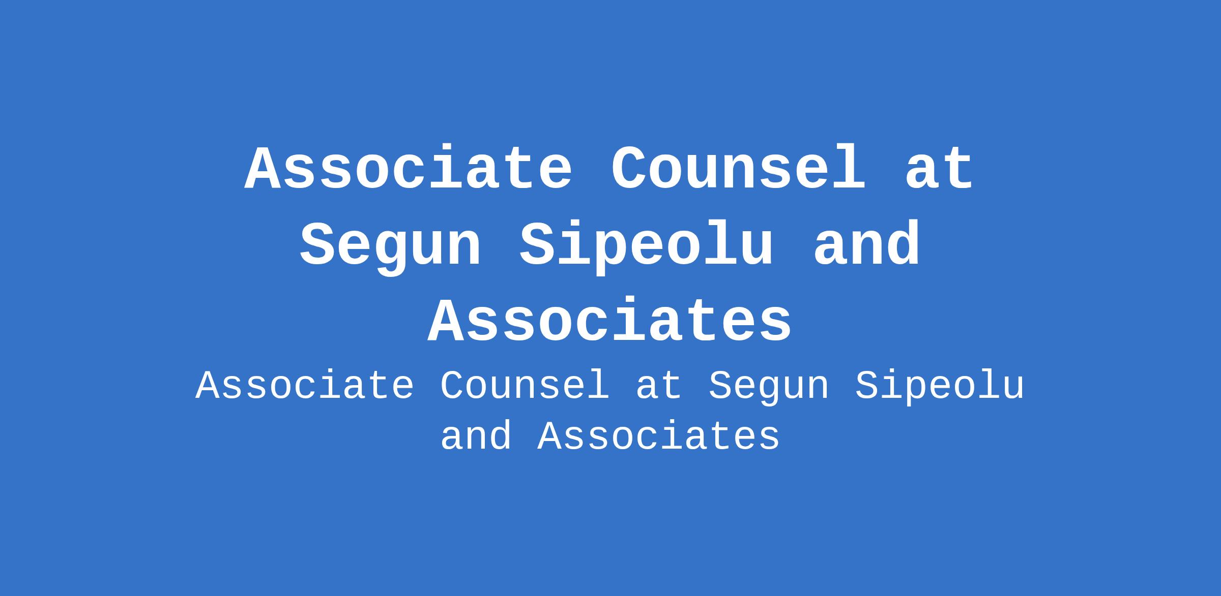 Segun Sipeolu and Associates is recruiting to fill the position of: Associate Counsel. The position is located in Ikeja, Lagos State. Interested candidates should possess a Bachelor of LawDegree (LLB) and BL with 5 - 10 years proven experience in Litigation, Commercial and Corporate practice, compliance and regulatory frame work.