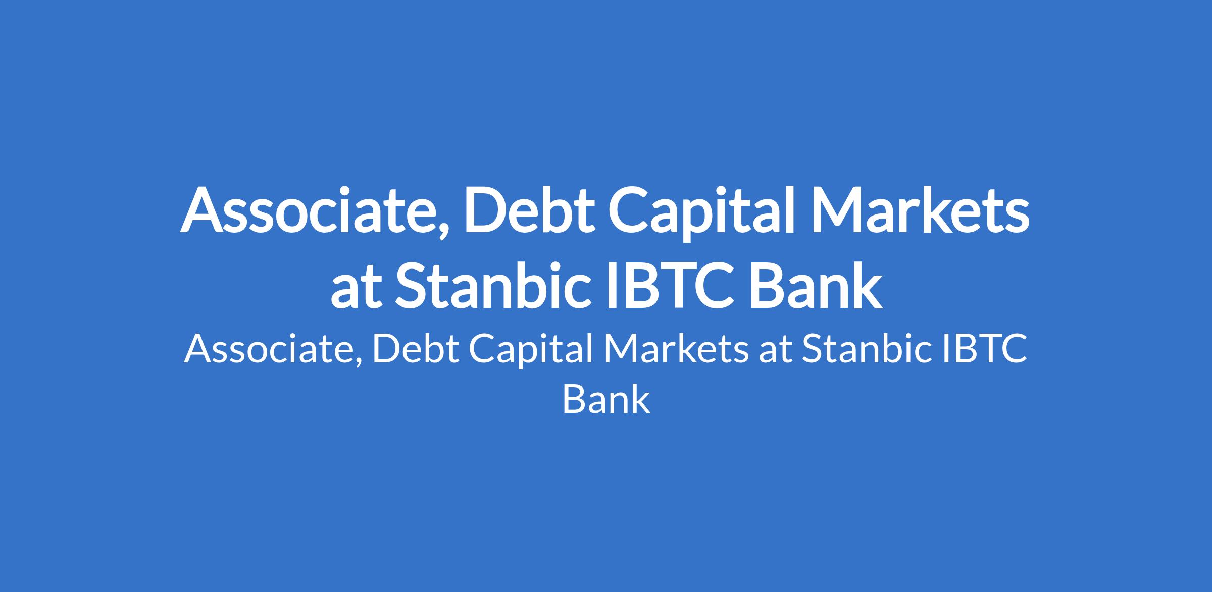 Stanbic IBTC Bank is recruiting to fill the position of: Associate, Debt Capital Markets. The position is located in Walter Carrington Crescent, Lagos State. Interested candidates should possess a First Degree in Engineering, Finance, Accounting, or Social Sciences with 3-5 years Demonstrated ability to work independently, with a track record managing multiple workstreams to deliver timely results.