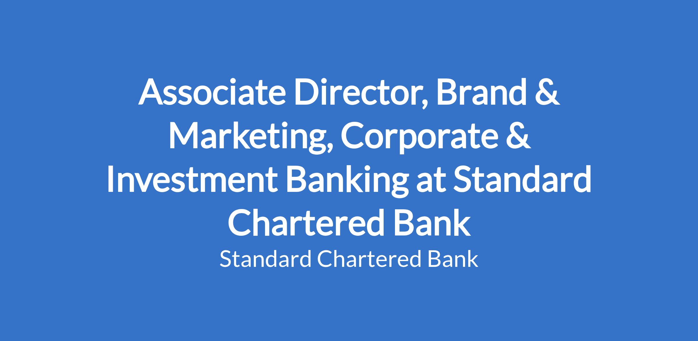 Associate Director, Brand & Marketing, Corporate & Investment Banking at Standard Chartered Bank