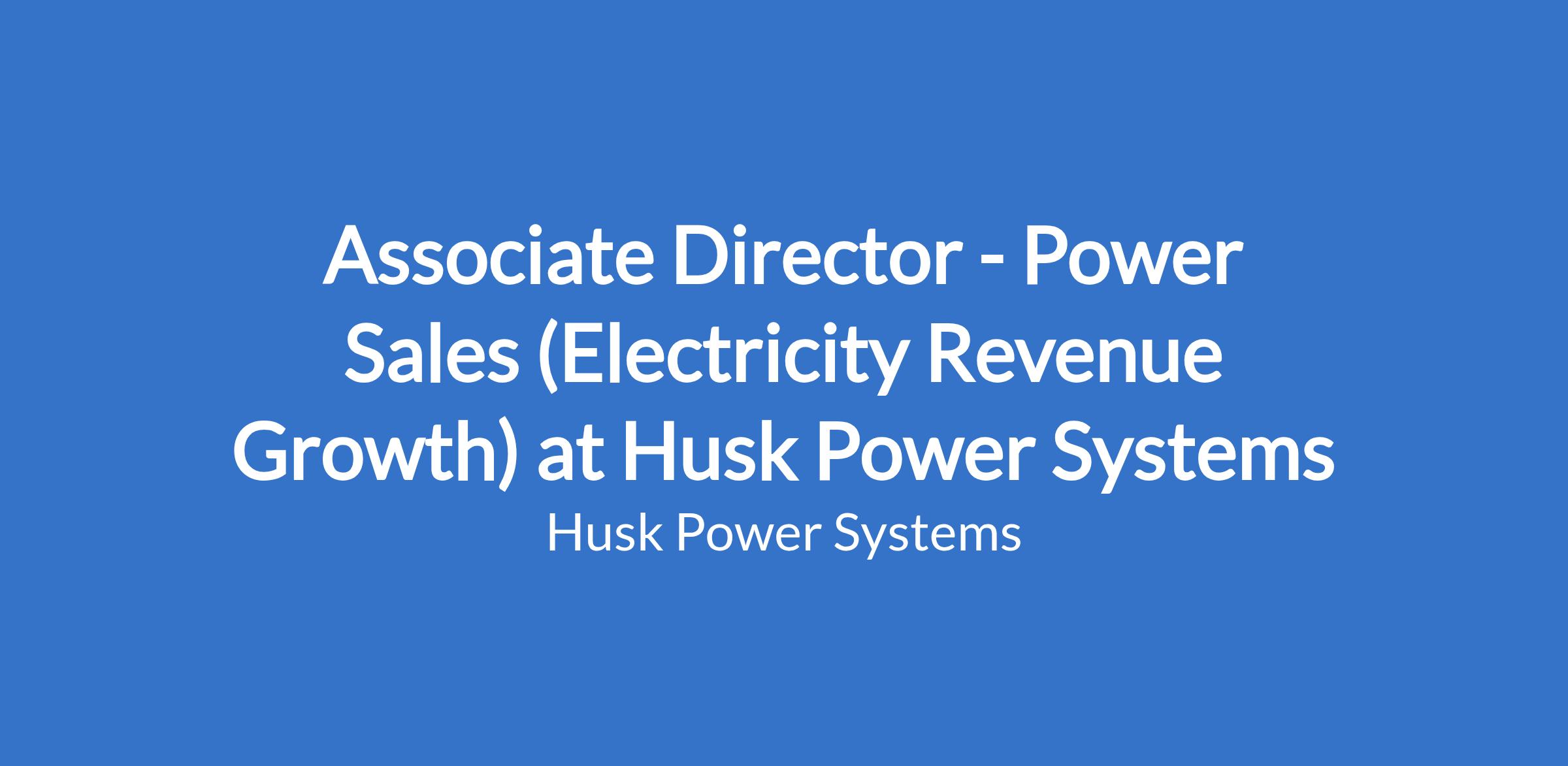 Associate Director - Power Sales (Electricity Revenue Growth) at Husk Power Systems
