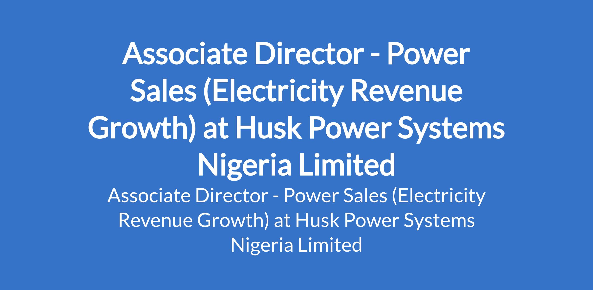 Husk Power Systems Nigeria Limited is recruiting to fill the position of: Associate Director - Power Sales (Electricity Revenue Growth). The position is located in Jos, Plateau State. Interested candidates should be graduates from a leading institution with a related Degree in Sales, Business Management and Marketing; and 10+ years of relevant sales experience, with 5 years in a similar role within the Energy, Insurance, Telecom, Banking or FMCG sector.