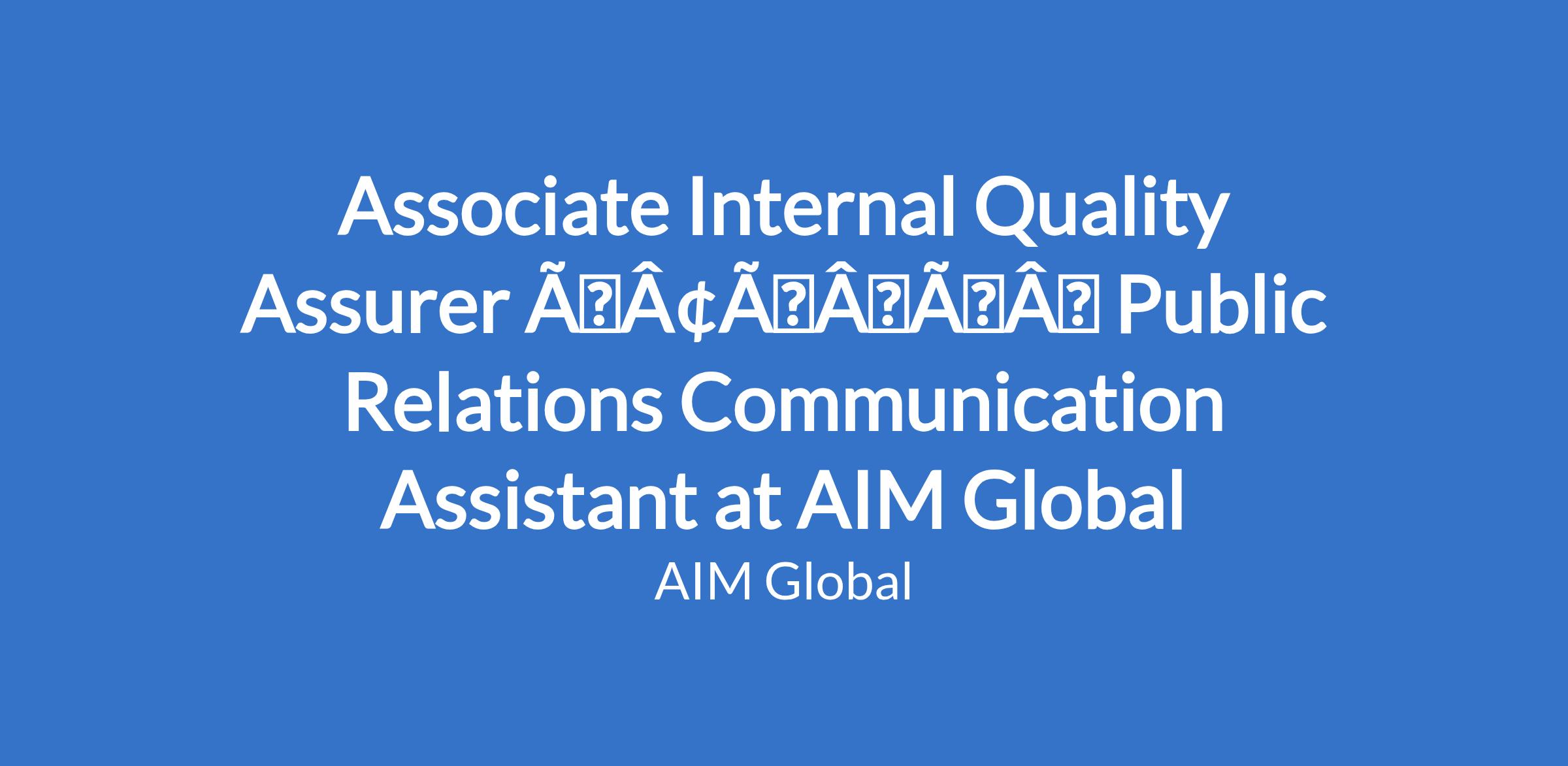 Associate Internal Quality Assurer âÃÂàPublic Relations Communication Assistant at AIM Global