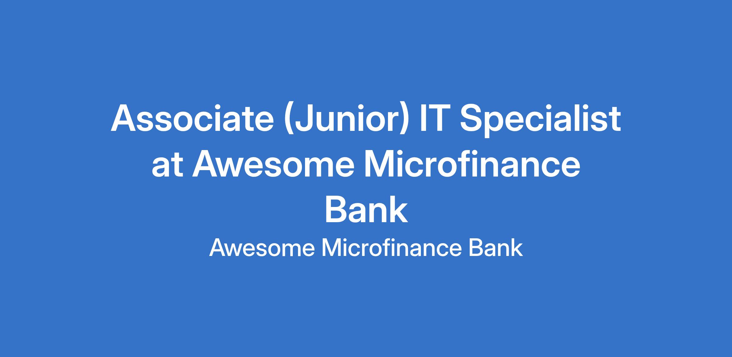 We are seeking an Associate (Junior) IT Specialist for a full-time, on-site role located in Abuja.