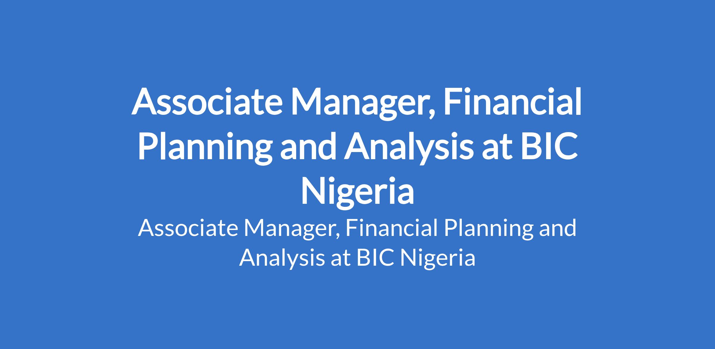 BIC Nigeria is recruiting to fill the position of: Associate Manager, Financial Planning and Analysis. The position is located in Lagos State. Interested candidates should possess a Bachelor's Degree in Accounting / Economics / Finance with 5+ years experience in Financial Planning and Analysis.