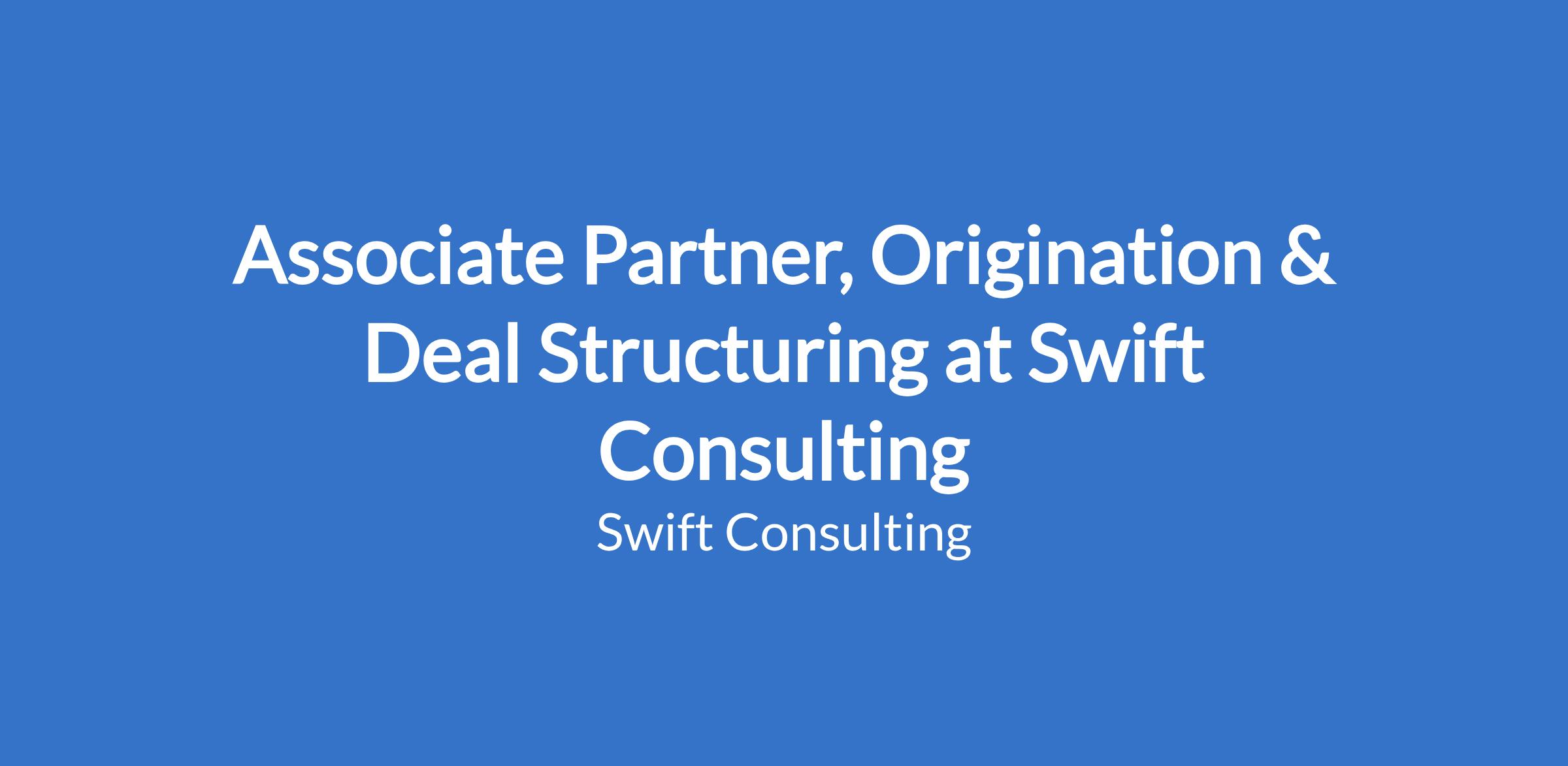 Associate Partner, Origination & Deal Structuring at Swift Consulting