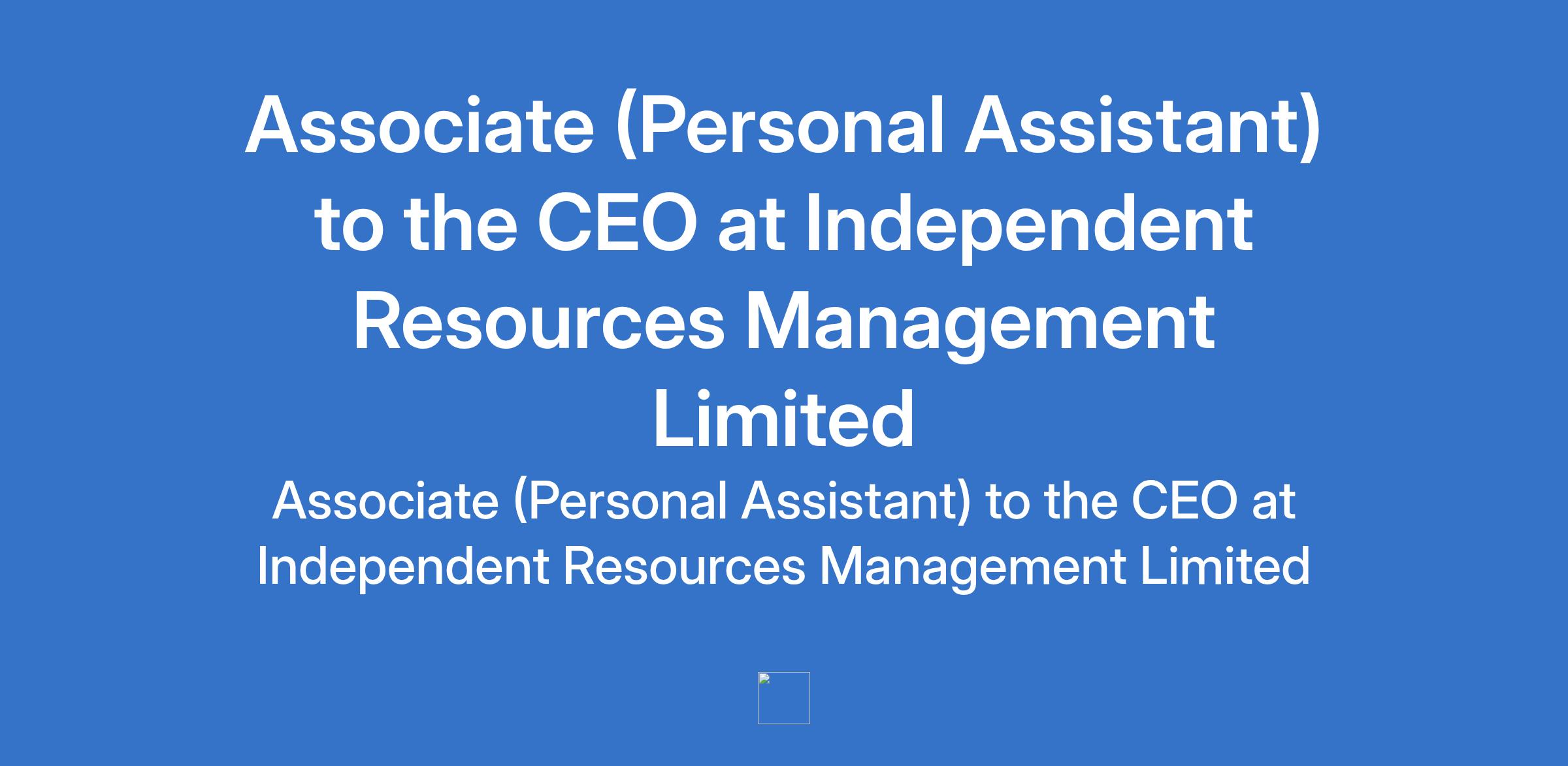 Independent Resources Management Limited is recruiting to fill the position of: Associate (Personal Assistant) to the CEO. The position is located in Ikoyi, Lagos State. Interested candidates should possess a MBA or MSc Degree in Management from Lagos Business School (preferred) or comparable institution with 3 - 5 years post-business school experience in consulting, corporate strategy, operations, financial services, or a structured management role.