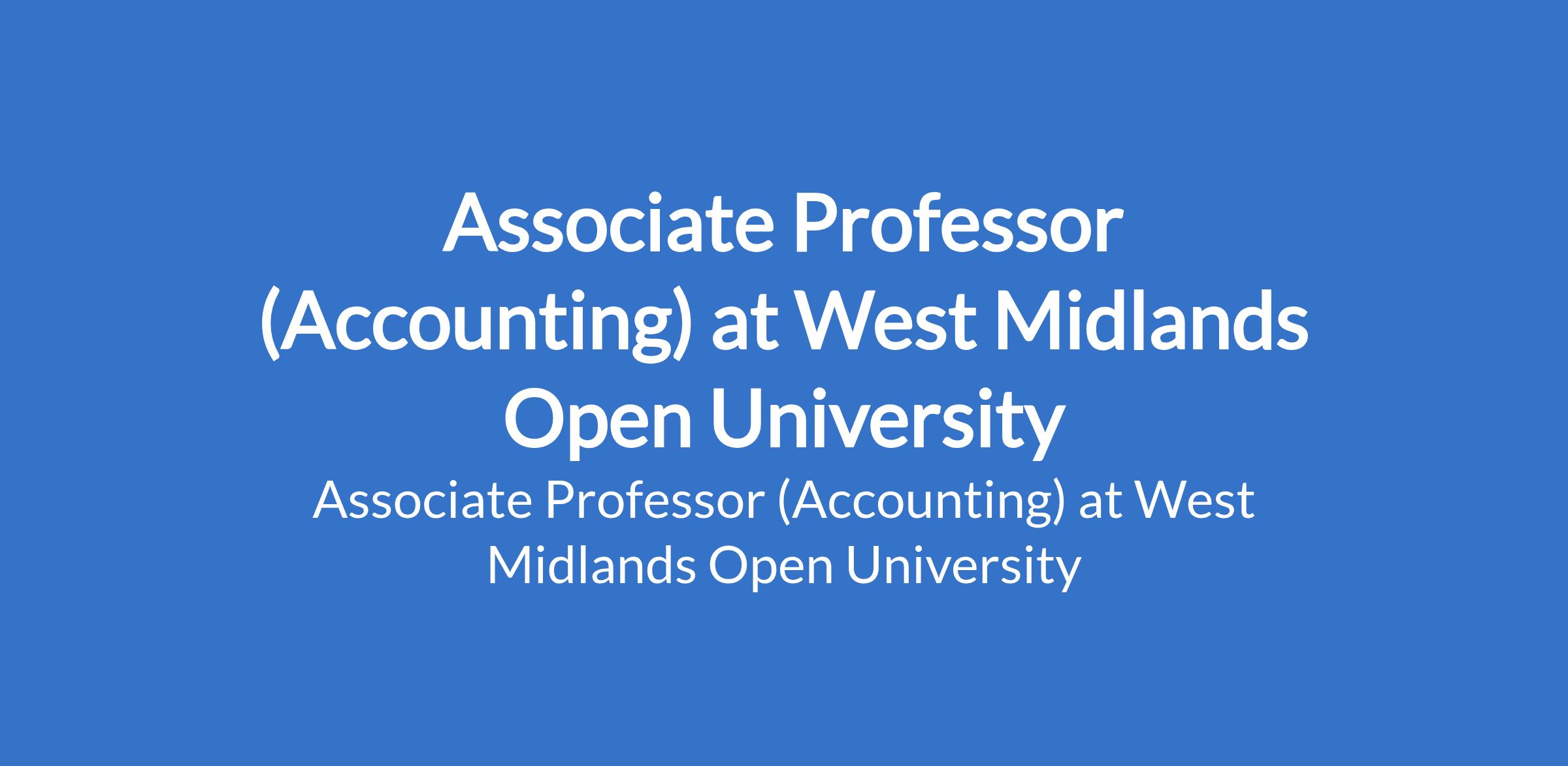 West Midlands Open University invites applications from suitable candidates to fill the position of: Associate Professor (Accounting). The position is located in Ikeja, Lagos State. Interested candidates should possess a Ph.D Degree with three years experience as a Senior Lecturer.