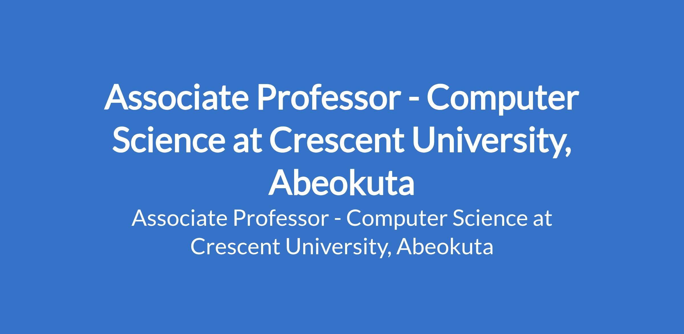 Crescent University, Abeokuta invites applications from suitable candidates to fill the position of: Associate Professor - Computer Science. The position is located in Abeokuta, Ogun State. Interested candidates should possess a PhD Degree in Computing with enough evidence of teaching, publication and research experience in the area of computing being applied for.