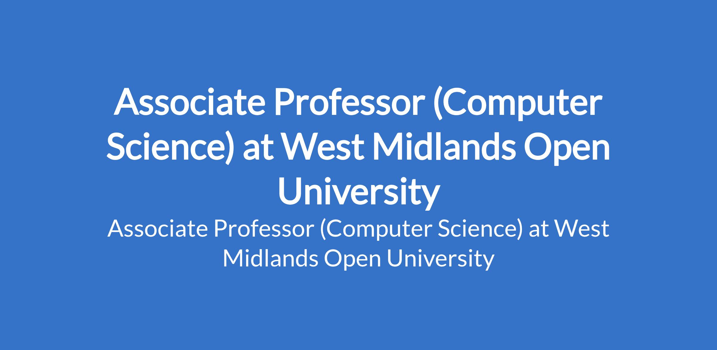 West Midlands Open University invites applications from suitable candidates to fill the position of: Associate Professor (Computer Science). The position is located in Ikeja, Lagos State. Interested candidates should possess a Ph.D Degree with three years experience as a Senior Lecturer.