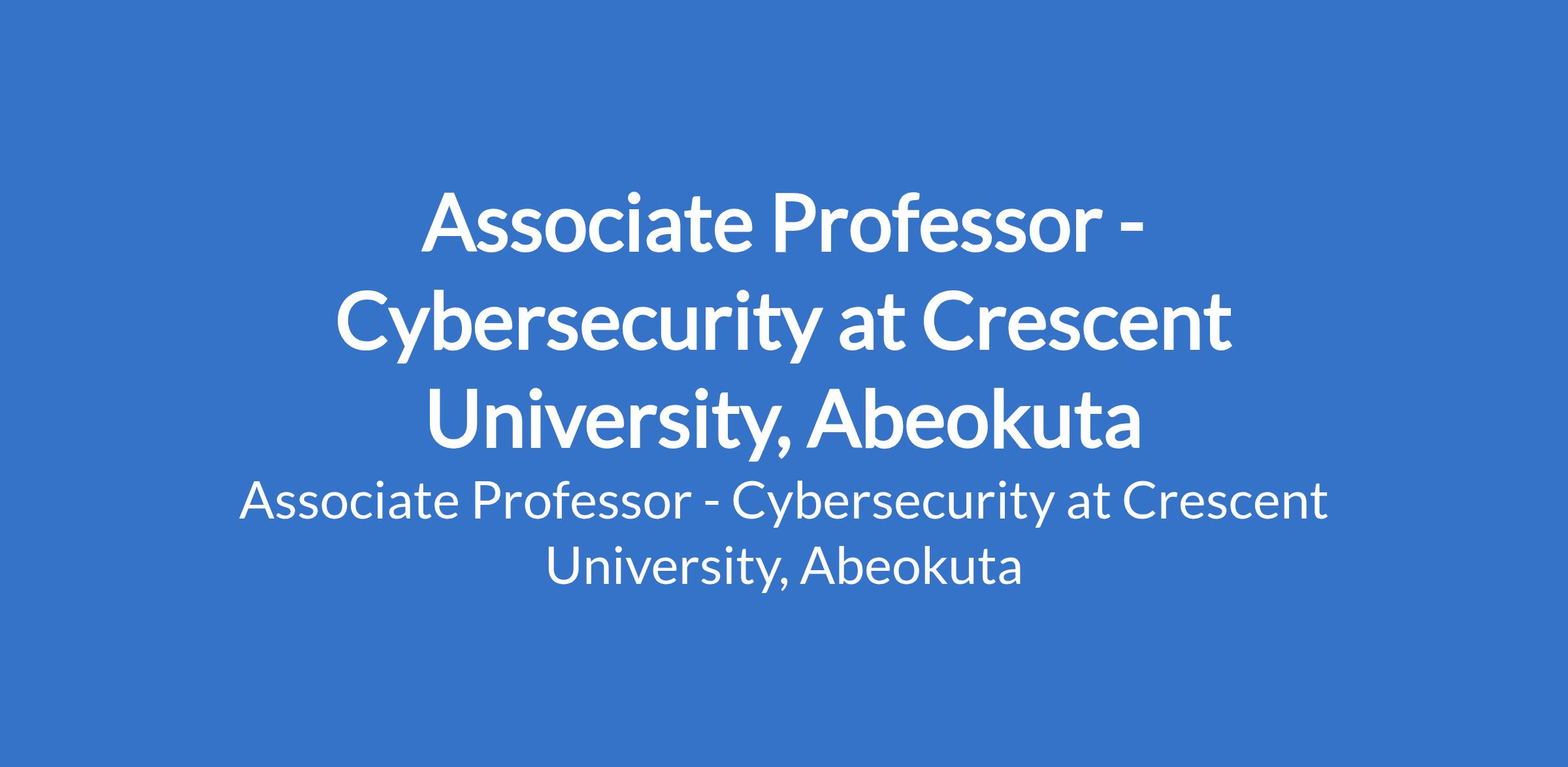 Crescent University, Abeokuta invites applications from suitable candidates to fill the position of: Associate Professor - Cybersecurity. The position is located in Abeokuta, Ogun State. Interested candidates should possess a PhD Degree in Computing with enough evidence of teaching, publication and research experience in the area of computing being applied for.
