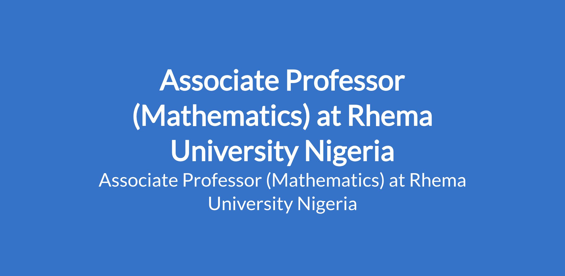 Rhema University Nigeria invites applications from suitably qualified candidates for the position of: Associate Professor (Mathematics). The position is located in Aba, Abia State. Interested candidates should possess a Ph.D. Degree with eight years post qualification experience and acceptable number of publications.