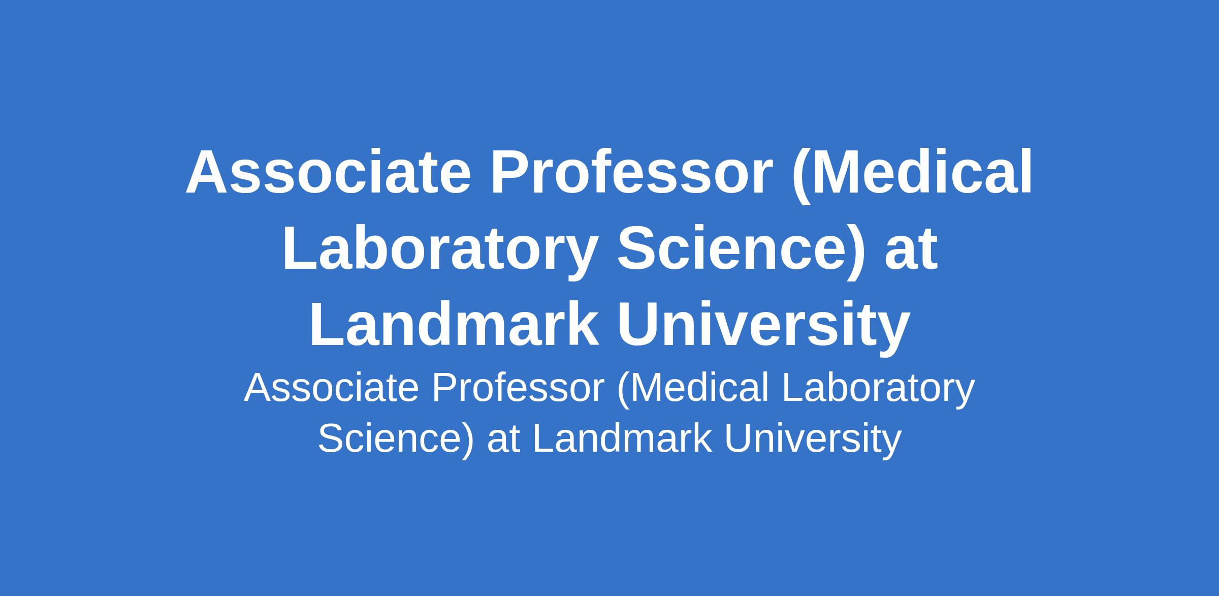 Landmark University invites applications from suitable candidates to fill the position of: Associate Professor (Medical Laboratory Science). The position is located in Omu-Aran, Kwara State. Interested candidates should possess a Ph.D. Degree with specialization in the discipline applied for with evidence of academic leadership in terms of publications, project design execution and monitoring, administrative leadership, etc. and at least 10 years of post-qualification, full time relevant teaching and research experience.