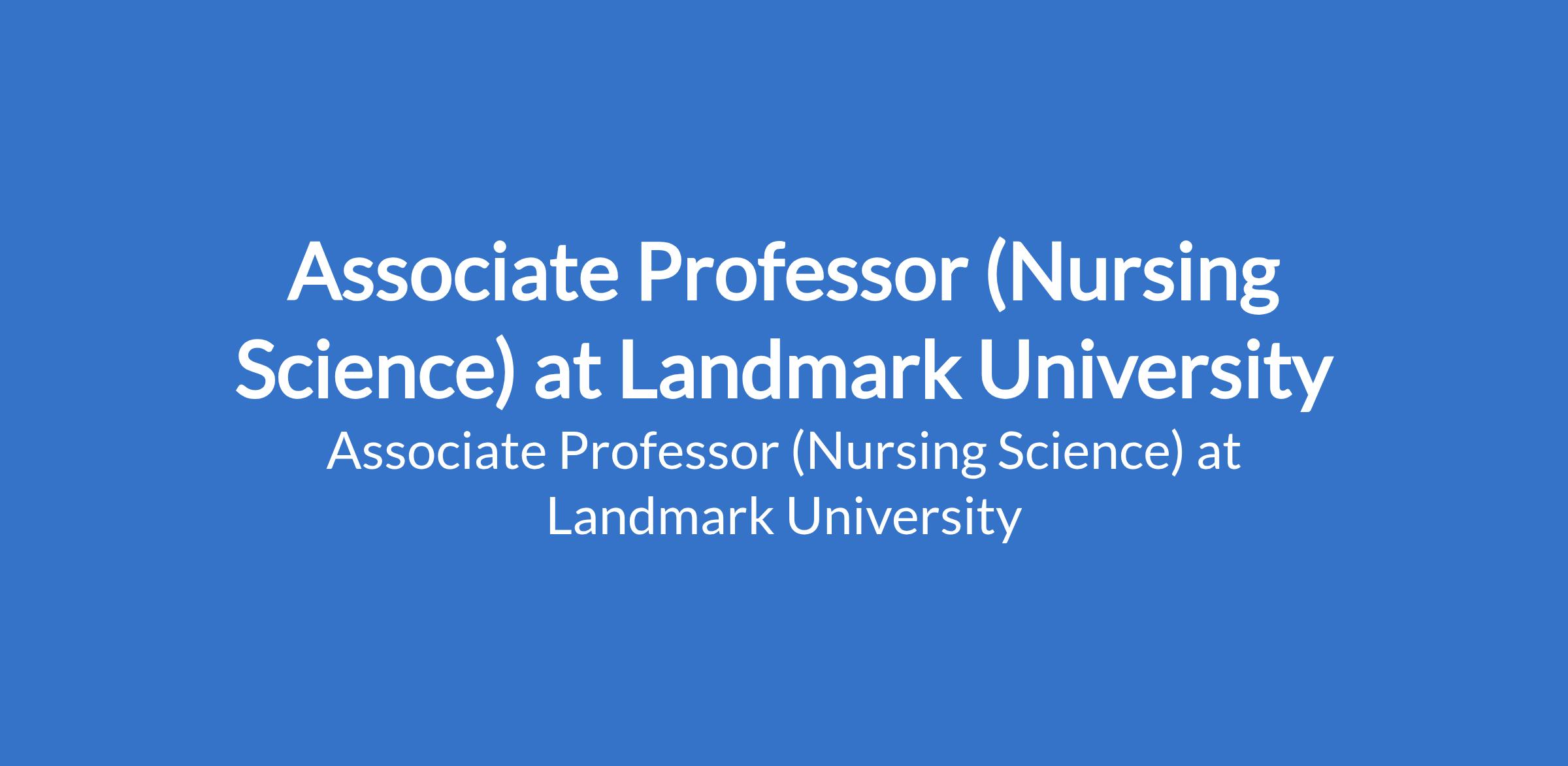 Landmark University invites applications from suitable candidates to fill the position of: Associate Professor (Nursing Science). The position is located in Omu-Aran, Kwara State. Interested candidates should possess a Ph.D. Degree with specialization in the discipline applied for with evidence of academic leadership in terms of publications, project design execution and monitoring, administrative leadership, etc with at least 10 years of post-qualification, fulltime, relevant teaching and research experience.