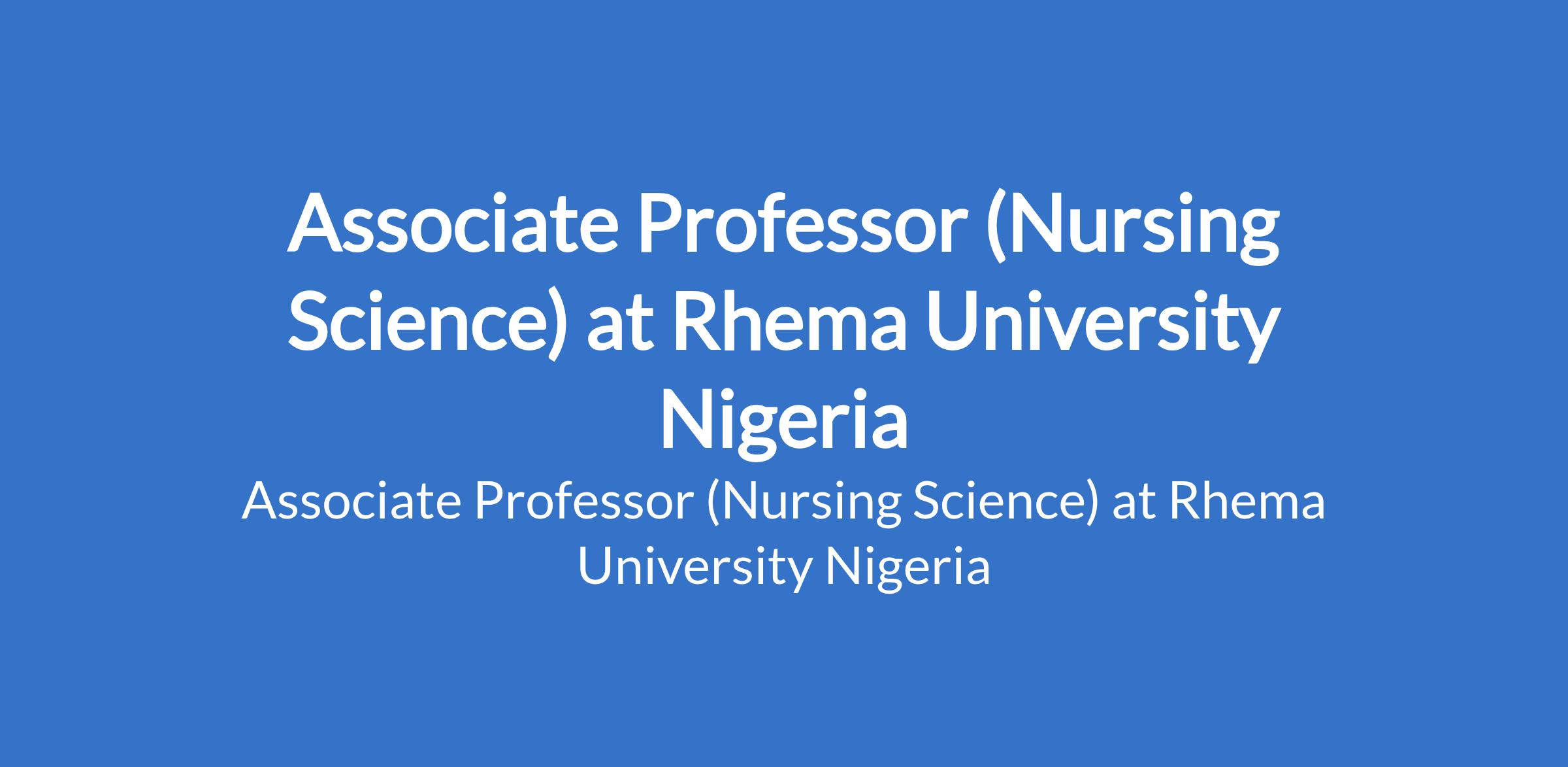 Rhema University Nigeria invites applications from suitably qualified candidates for the position of: Associate Professor (Nursing Science). The position is located in Aba, Abia State. Interested candidates should possess a Ph.D. Degree with eight years post qualification experience and acceptable number of publications.