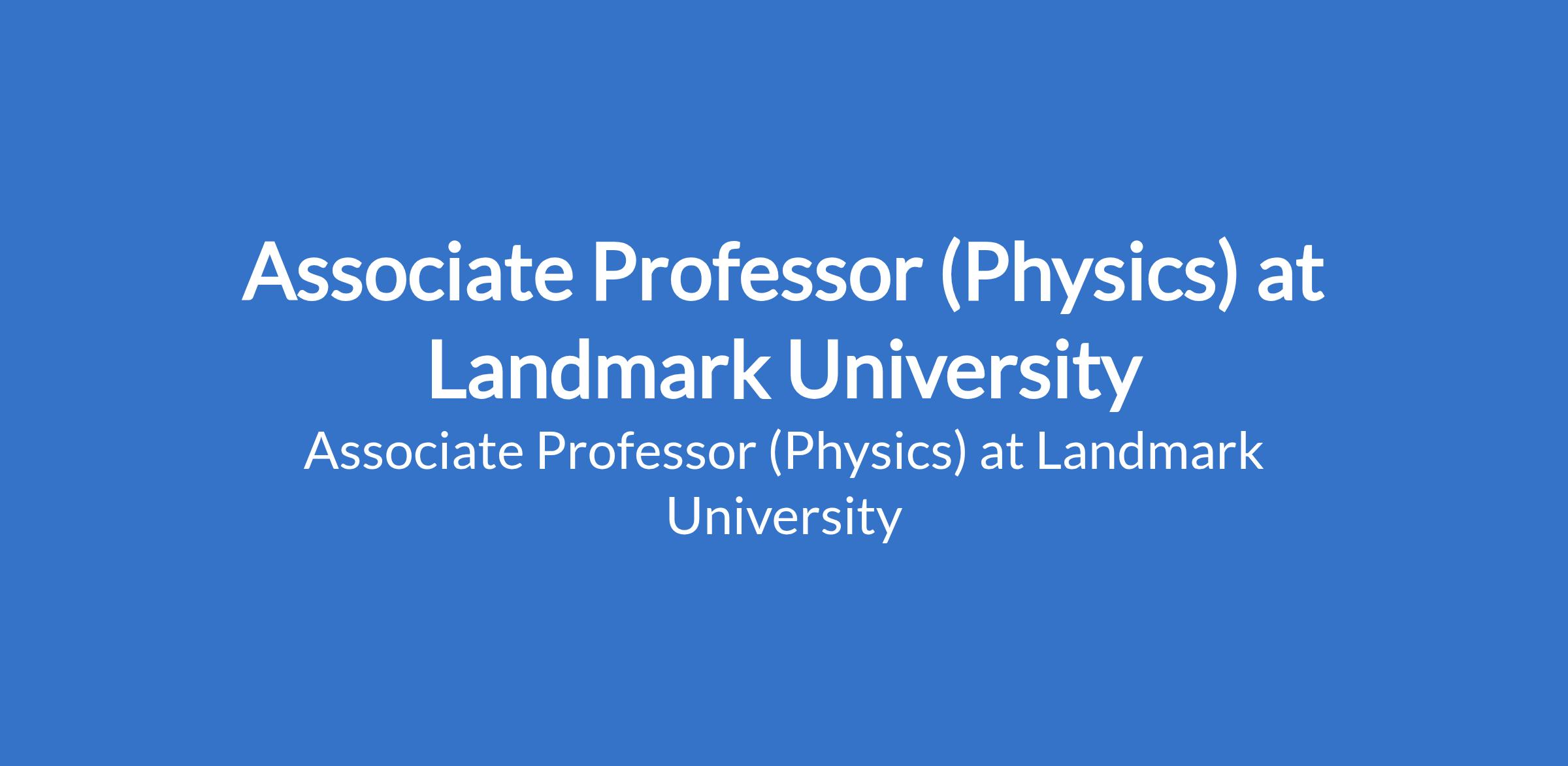 Landmark University invites applications from suitable candidates to fill the position of: Associate Professor (Physics). The position is located in Omu-Aran, Kwara State. Interested candidates should possess a Ph.D. Degree with specialization in the discipline applied for with evidence of academic leadership in terms of publications, project design execution and monitoring, administrative leadership, etc. and at least 10 years of post-qualification, full time relevant teaching and research experience.