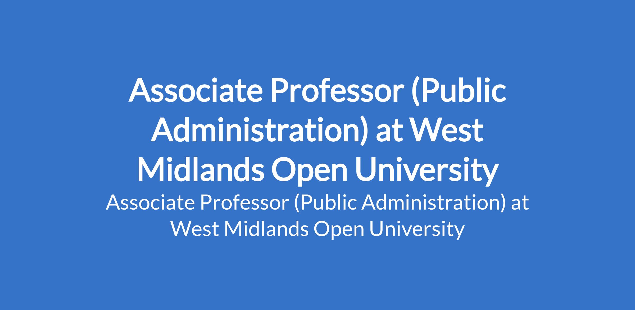 West Midlands Open University invites applications from suitable candidates to fill the position of: Associate Professor (Public Administration). The position is located in Ikeja, Lagos State. Interested candidates should possess a Ph.D Degree with three years experience as a Senior Lecturer.