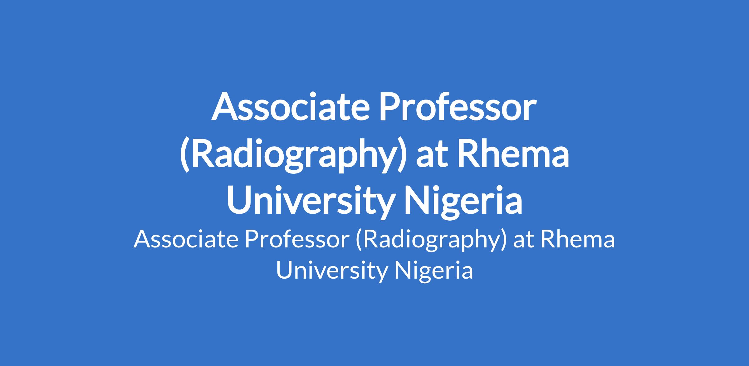 Rhema University Nigeria invites applications from suitably qualified candidates for the position of: Associate Professor (Radiography). The position is located in Aba, Abia State. Interested candidates should possess a Ph.D. Degree with eight years post qualification experience and acceptable number of publications.