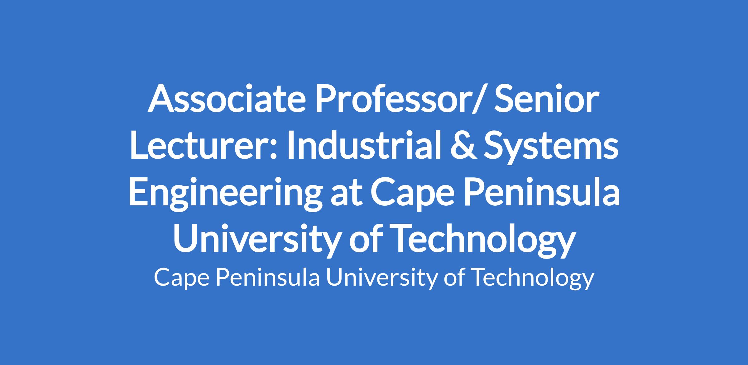 Teaching: The person must be able to teach at both undergraduate and postgraduate level and produce prospective graduates that are able to advance to higher qualifications in Industrial & Systems Engineering.