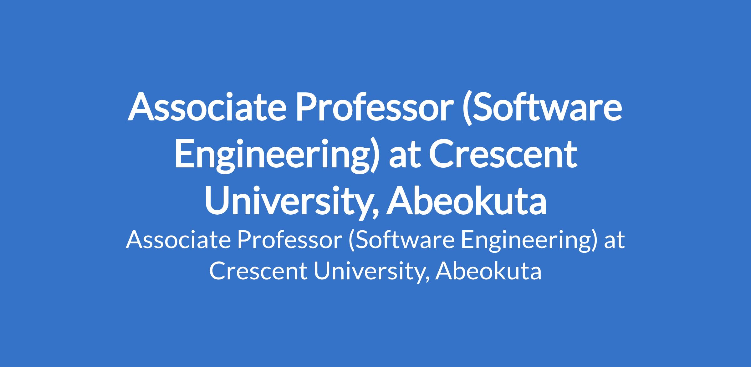 Crescent University, Abeokuta invites applications from suitable candidates to fill the position of: Associate Professor (Software Engineering) . The position is located in Ogun State. Interested candidates should possess a PhD in Computing, at least 14 sound scholarly articles in journals areas relevant to the discipline with at least five years full - time teaching experience in a university in addition to the toll owing;