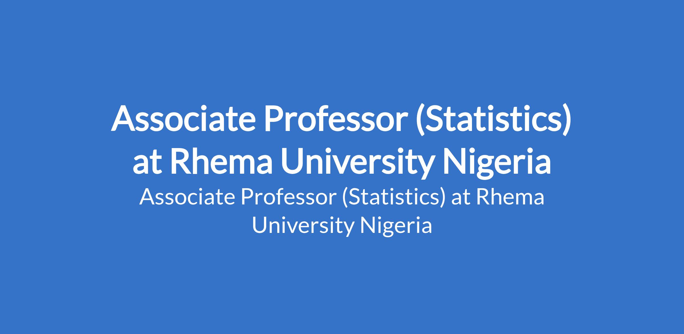 Rhema University Nigeria invites applications from suitably qualified candidates for the position of: Associate Professor (Statistics). The position is located in Aba, Abia State. Interested candidates should possess a Ph.D. Degree with eight years post qualification experience and acceptable number of publications.
