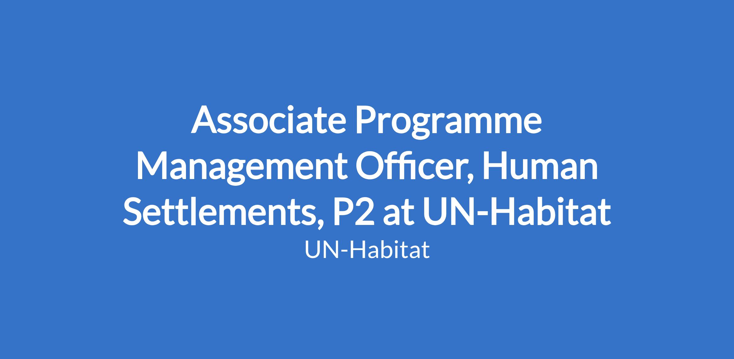 Associate Programme Management Officer, Human Settlements, P2 at UN-Habitat