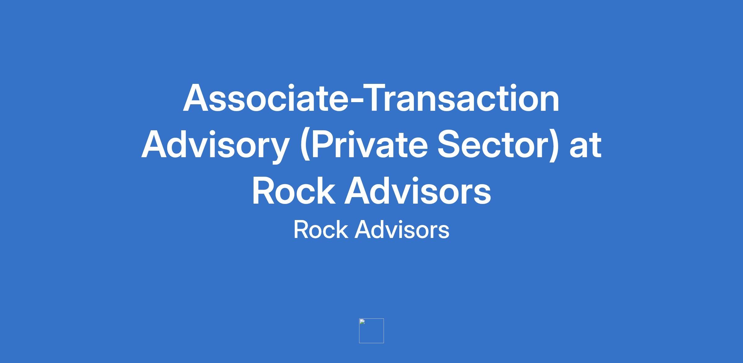 Associate-Transaction Advisory (Private Sector) at Rock Advisors