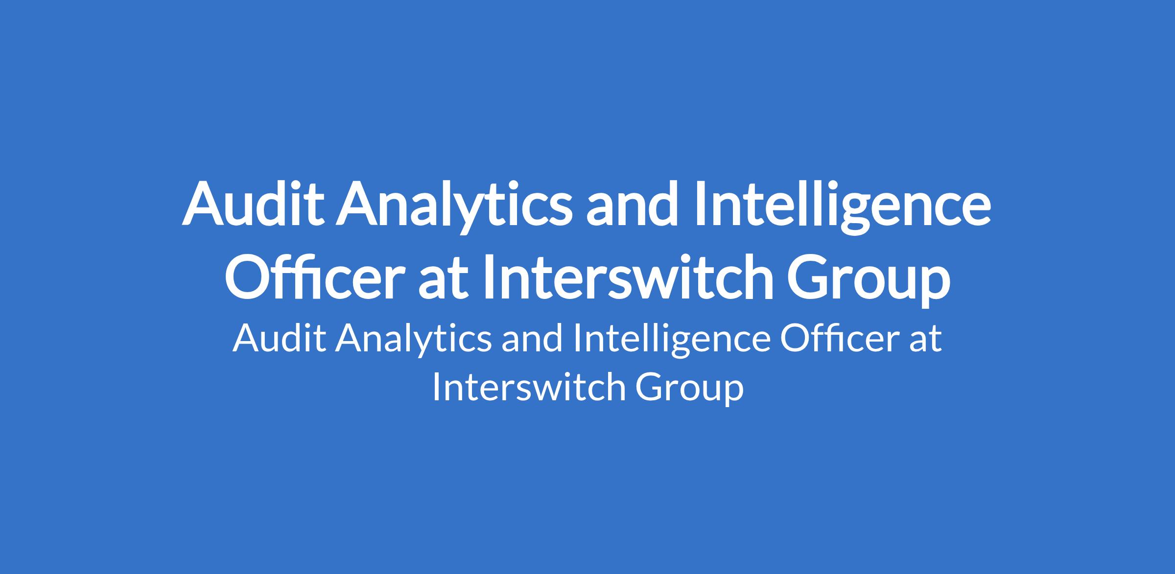 Interswitch Group is recruiting to fill the position of: Audit Analytics and Intelligence Officer. The position is located in Lagos State. Interested candidates should possess a Bachelors Degree in Information Technology, Data Analytics, Computer Science, Accounting, Finance, or related fields with 3 - 5 years of relevant experience in internal audit, analytics, or investigative roles.