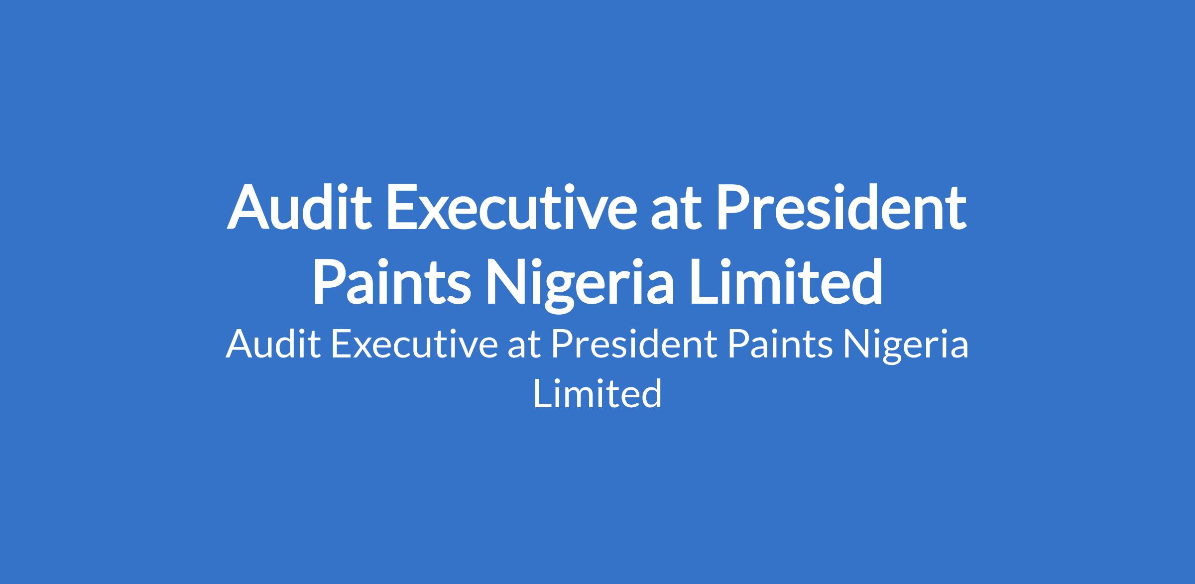 Audit Executive at President Paints Nigeria Limited