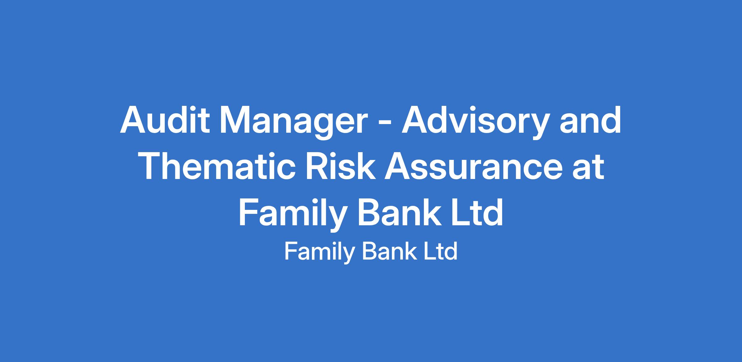 Audit Manager - Advisory and Thematic Risk Assurance at Family Bank Ltd