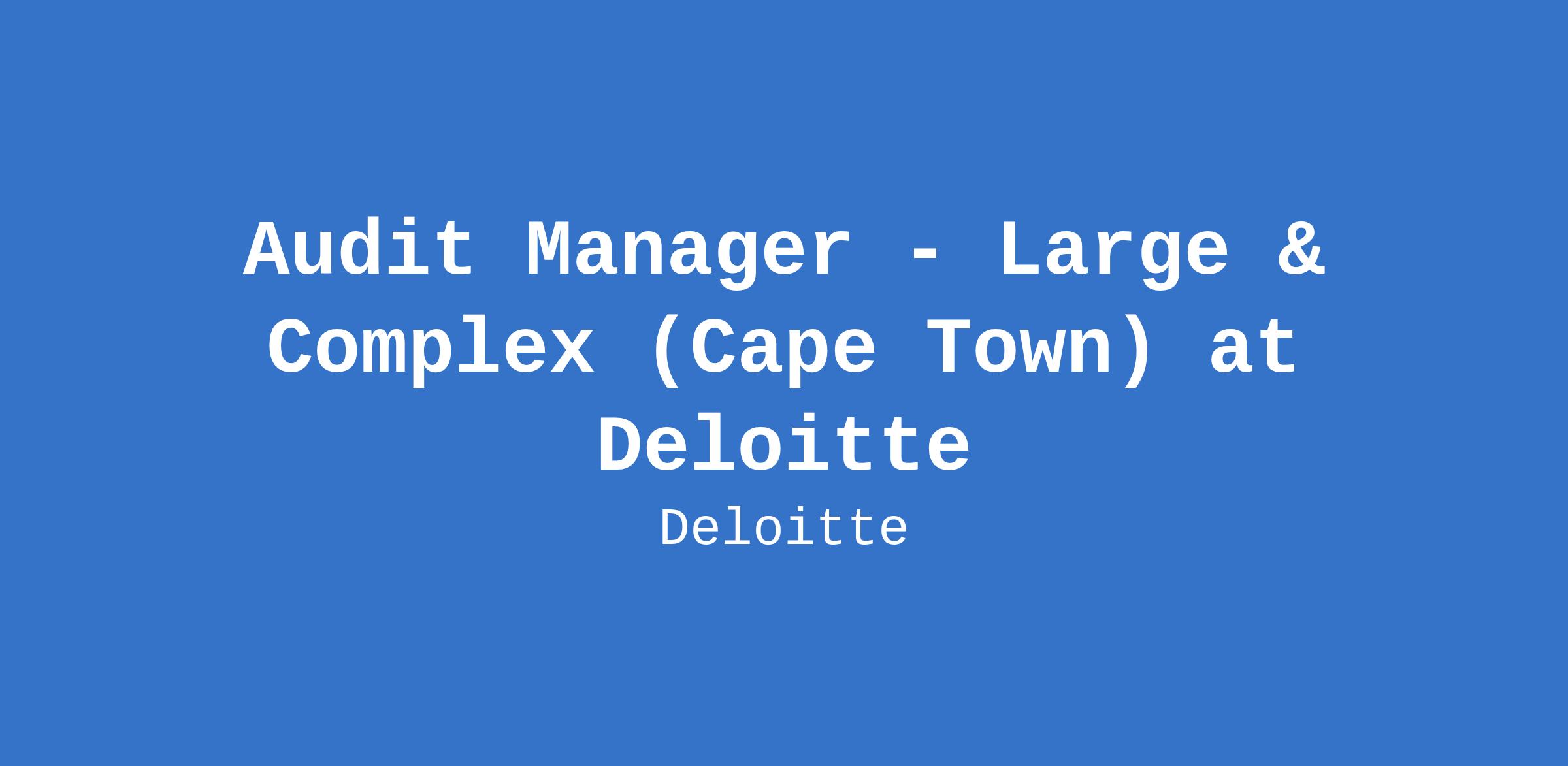 Audit Manager - Large & Complex (Cape Town) at Deloitte