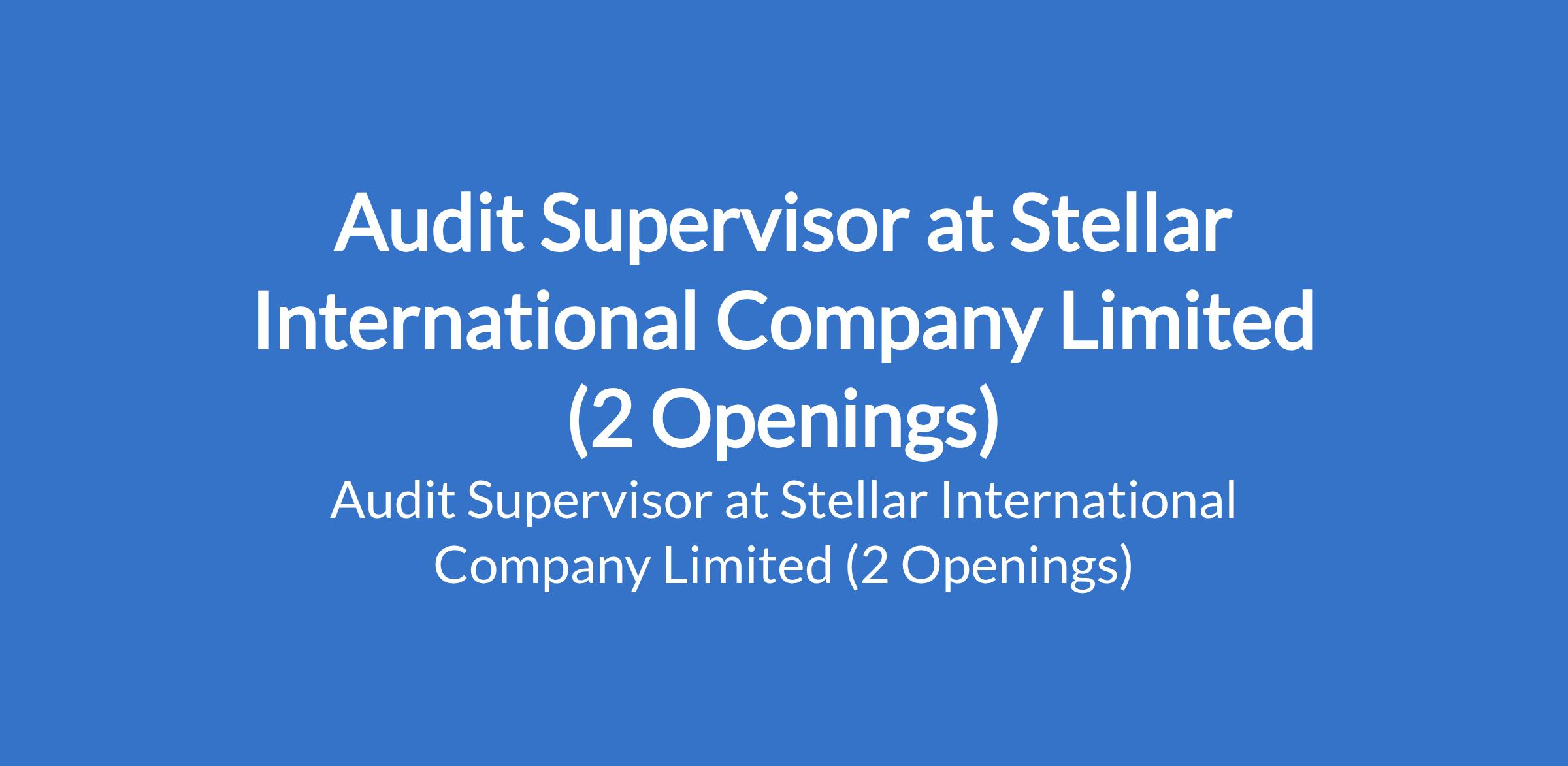 Stellar International Company Limited is recruiting to fill the position of: Audit Supervisor. The position is located in Idu - Abuja (FCT), and Ikeja - Lagos State. Interested candidates should possess a BSc or HND qualification in Business Management with over 2 years of experience in operation management or auditing, familiar with the operation mode and business characteristics of the site.