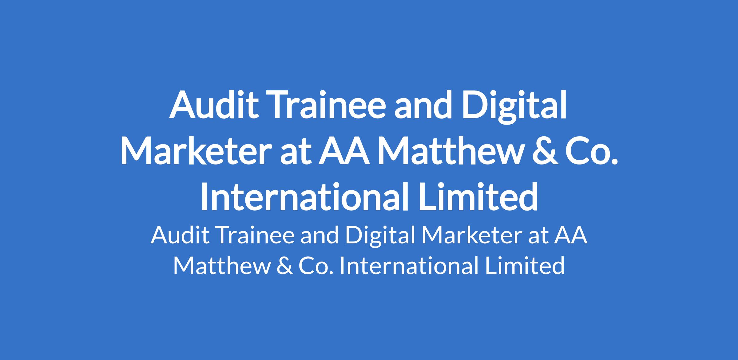 AA Matthew & Co. International Limited is recruiting to fill the position of: Audit Trainee and Digital Marketer. The position is located in Ibeju-Lekki Dangote Refinery, Lagos State. Salary: N140,000 - N150,000 / month. Interested candidates should possess a Bachelors Degree in Accounting or any related discipline with 1 2 years of experience in an accountancy practice, preferably in a professional services firm.
