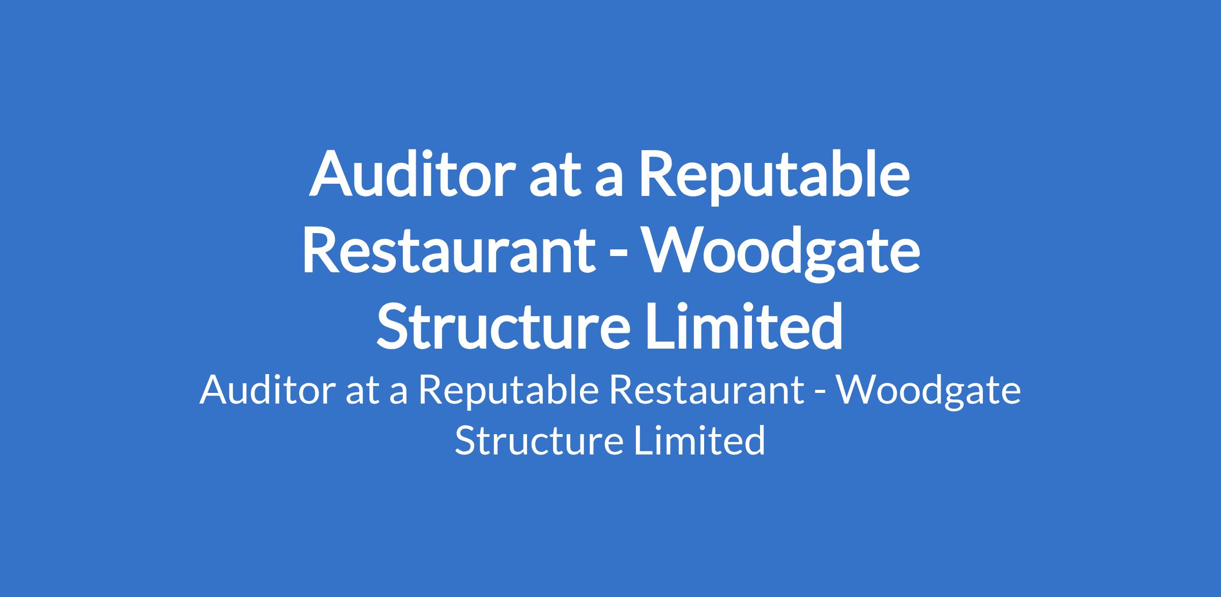 Woodgate Structure Limited - Our client, a reputable restaurant is recruiting to fill the position of: Auditor. The position is located in Wuse 2, Abuja (FCT). Salary: N200,000 / month. Interested candidates should possess relevant qualifications with years of work experience.