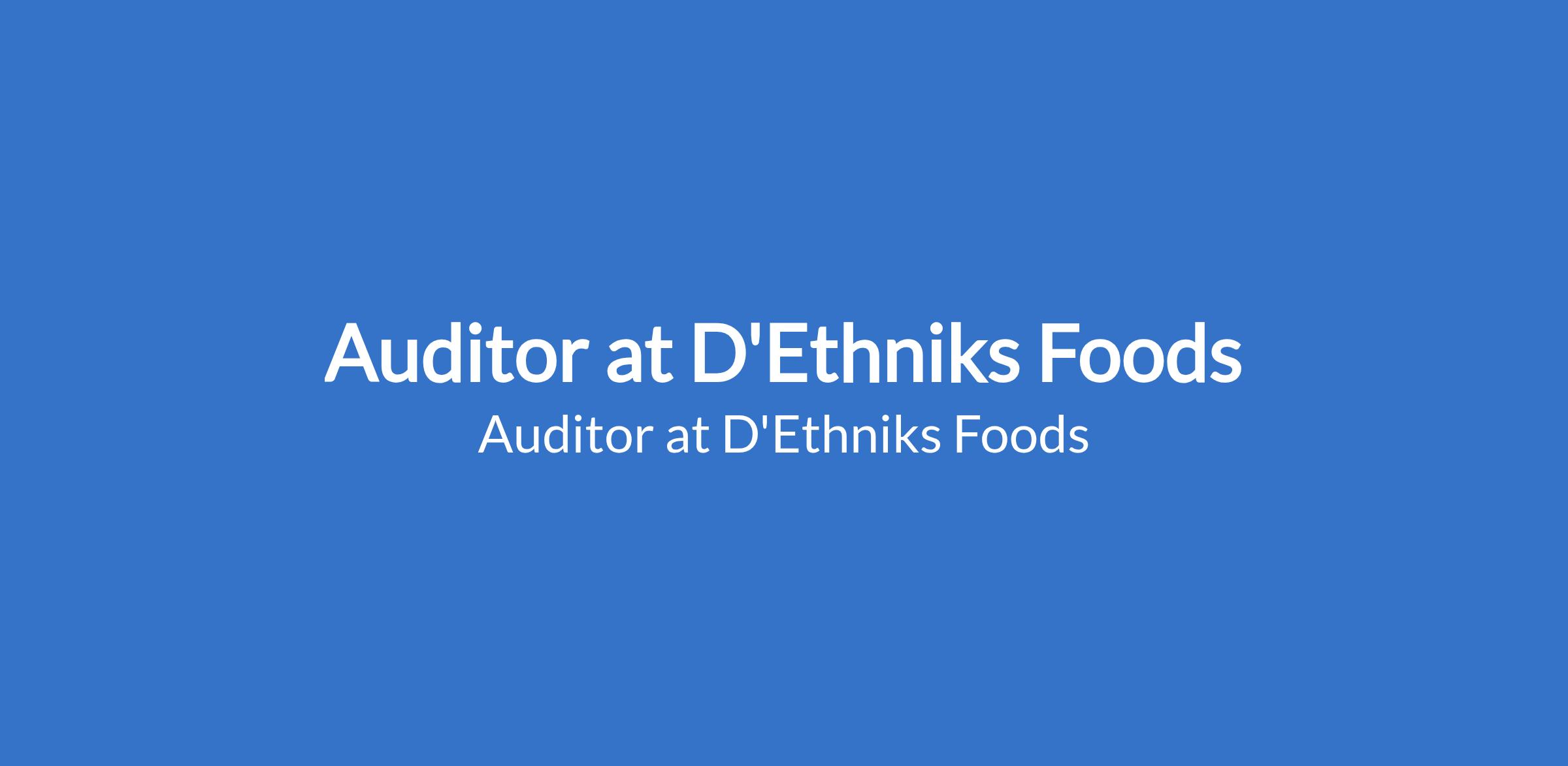 D'Ethniks Foods is recruiting to fill the position of: Auditor. The position is located in Wetland Plaza, Jabi - Abuja. Interested candidates should possess a Bachelor's Degree in Accounting, Finance, or related field with 3-5 years auditing experience (hospitality preferred); ICAN/ACCA (or in progress); Internal Audit Certification (added advantage).