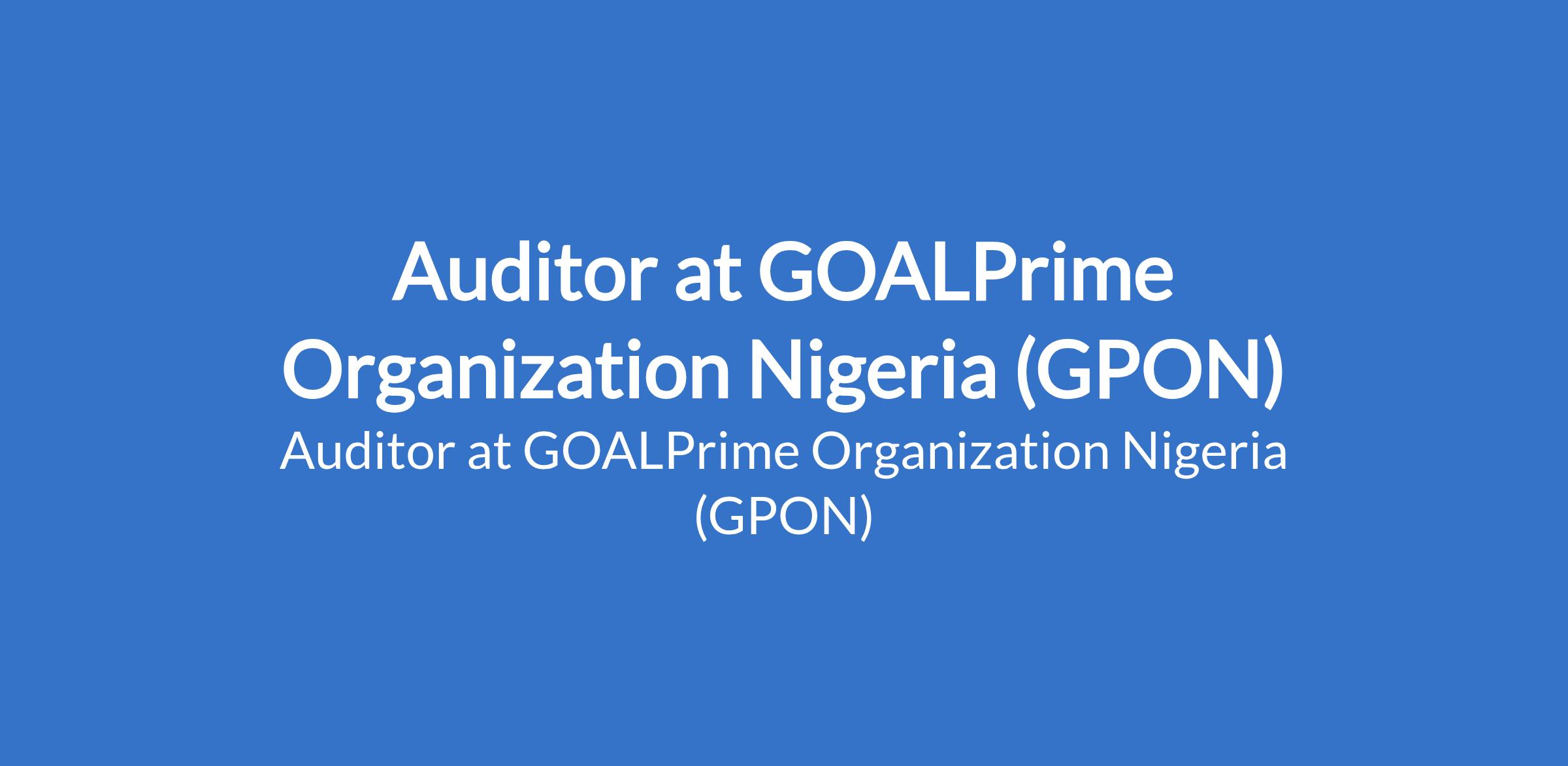 GOALPrime Organization Nigeria (GPON) is recruiting to fill the position of: Auditor. The position is located in Borno State. Interested candidates should be a certified professional auditor with a minimum of 5 years experience in auditing NGOs, INGOs, or donor-funded projects.