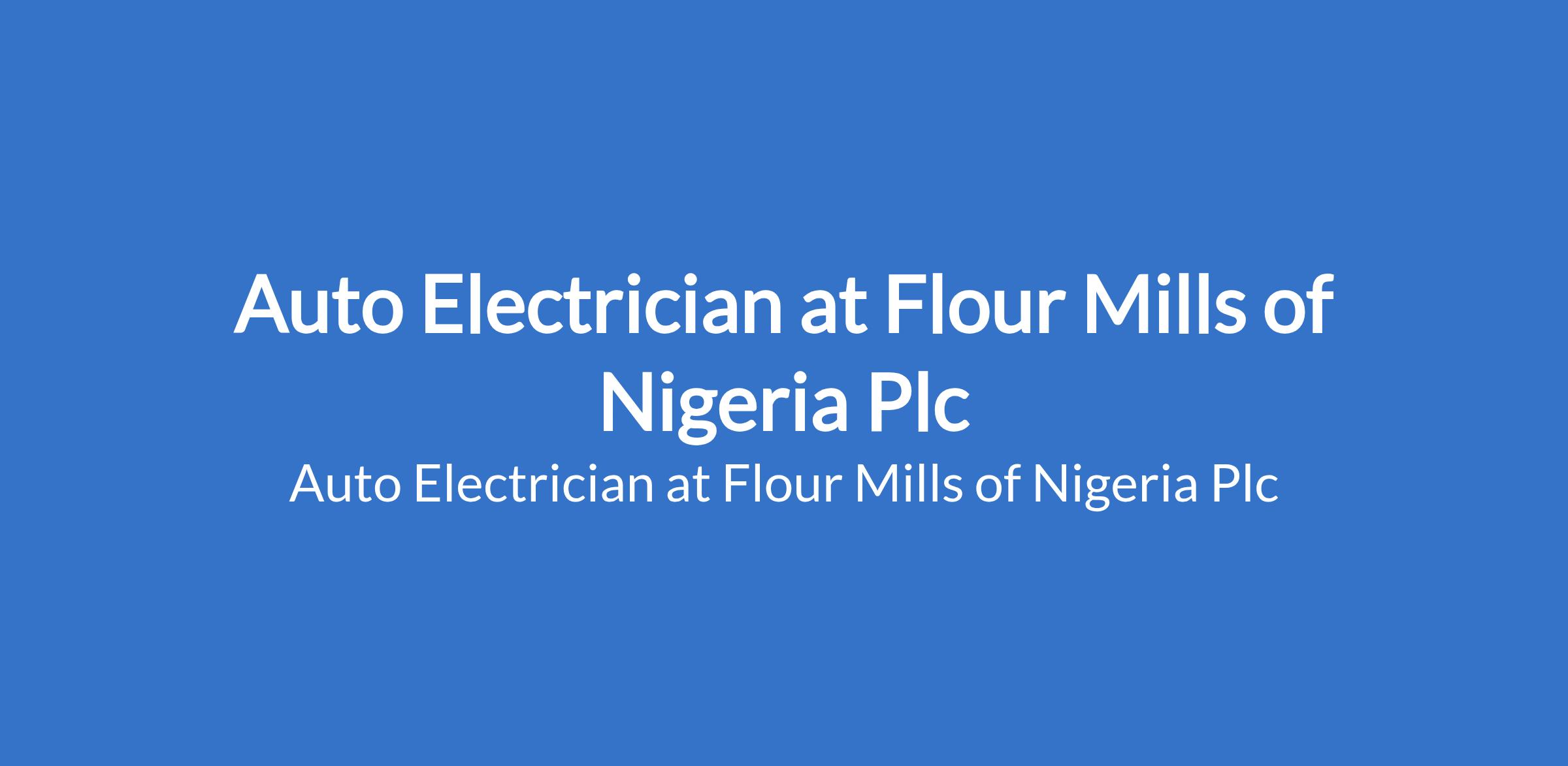 Flour Mills of Nigeria Plc is recruiting to fill the position of: Auto Electrician. Interested candidates should possess a Trade Test, SSCE, or National Diploma in Electrical Engineering or a related field with a minimum of5 years' experiencein truck maintenance, specifically electrical systems.