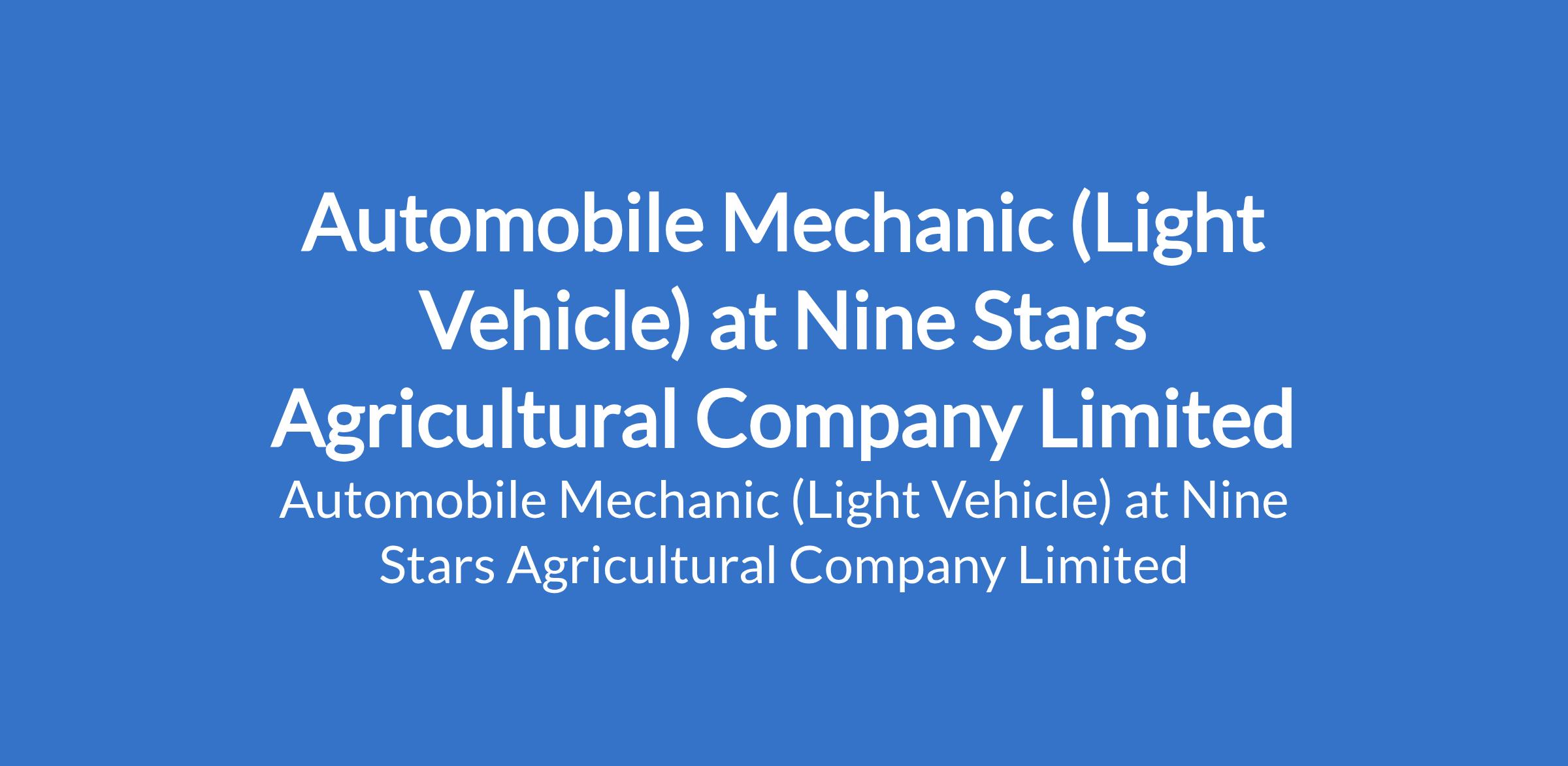 Nine Stars Agricultural Company Limited is recruiting to fill the position of: Automobile Mechanic (Light Vehicle). The position is located in Ode-Remo, Ogun State. Salary: N150,000 - N200,000 per month. Interested candidates should possess a National Diploma (ND) or equivalent technical qualification in Automobile Engineering or a related field with a minimum of 4 years relevant experience as an automobile mechanic (light vehicles).
