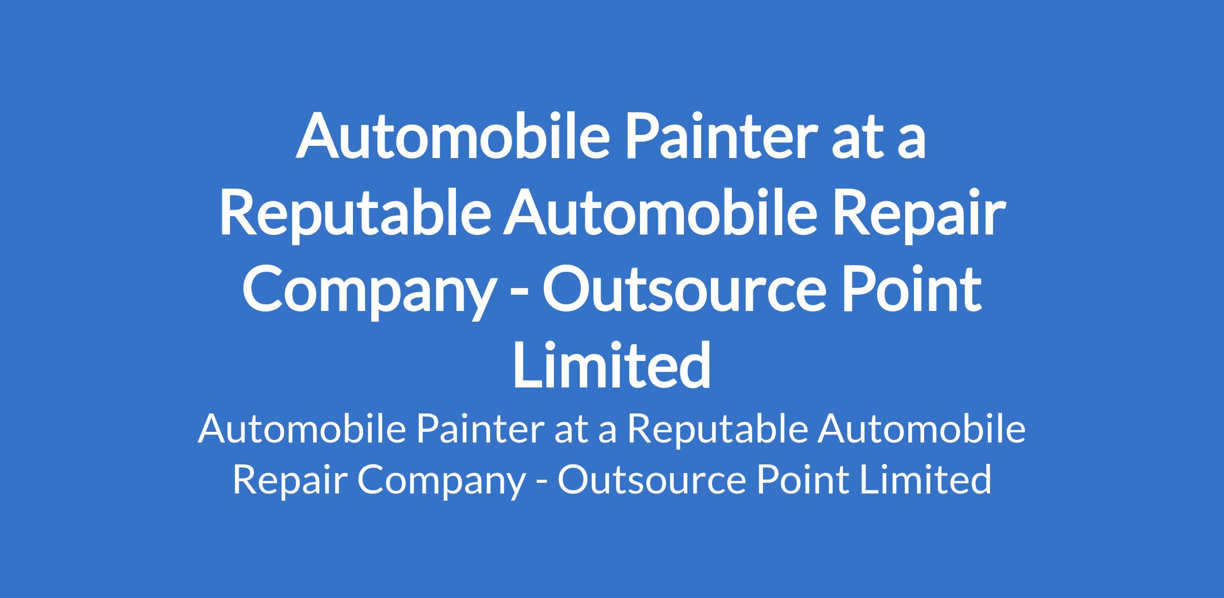 Outsource Point Limited - Our client, a reputable organization in the Automobile Repair sector is recruiting to fill the position of: Automobile Painter. The position is located in Lagos State. Salary: N140,000 monthly. Interested candidates should possess a minimum of SSCE or relevant technical training with 12 years experience as an automobile painter or in vehicle body repair.