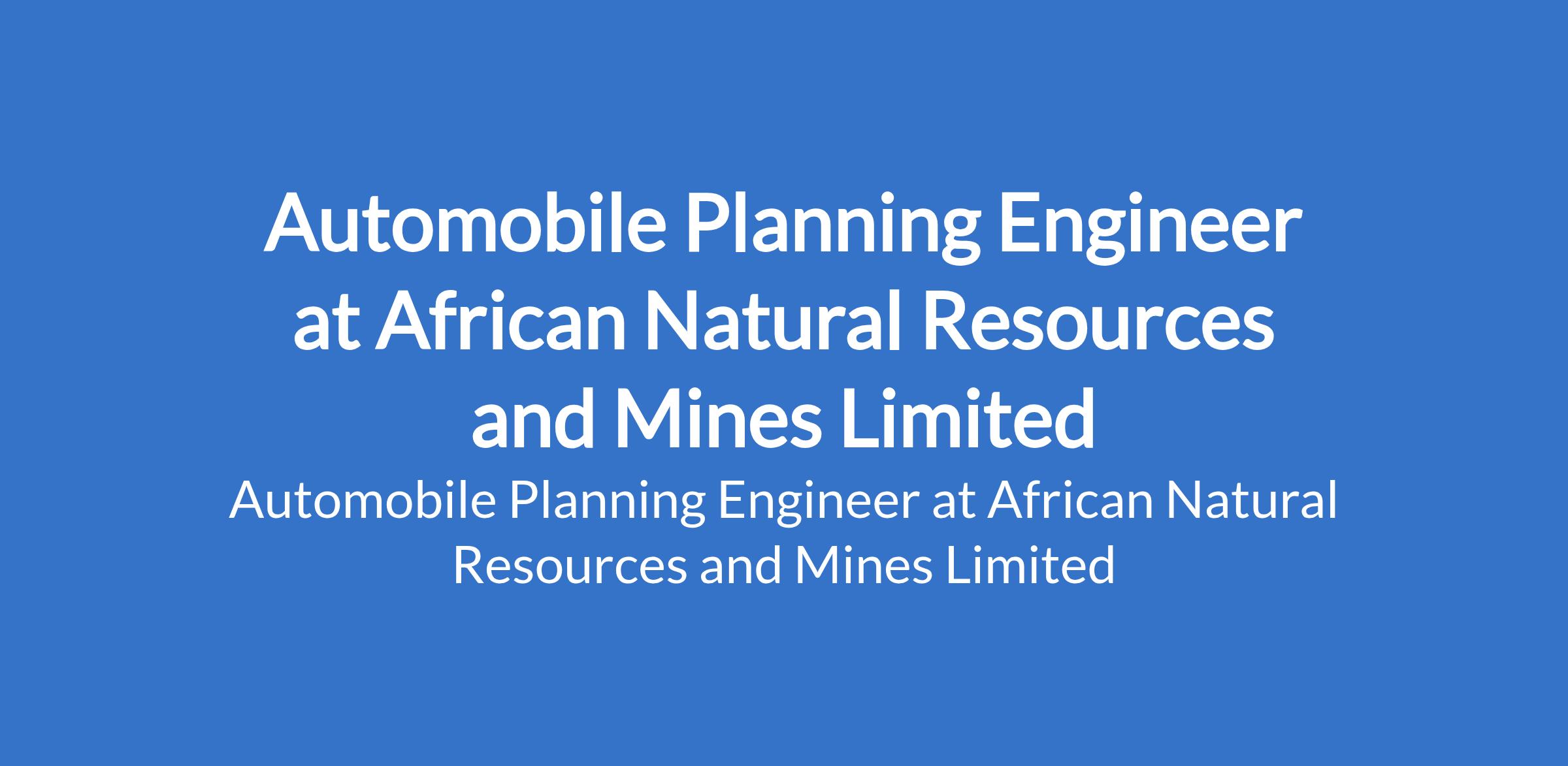 African Natural Resources and Mines Limited is recruiting to fill the position of: Automobile Planning Engineer. The position is located in Gujeni, Kaduna State. Interested candidates should possess a B.Eng / B.Tech in Automobile / Mechanical / Production Engineering with 2 6 years of experience in automobile manufacturing/assembly.