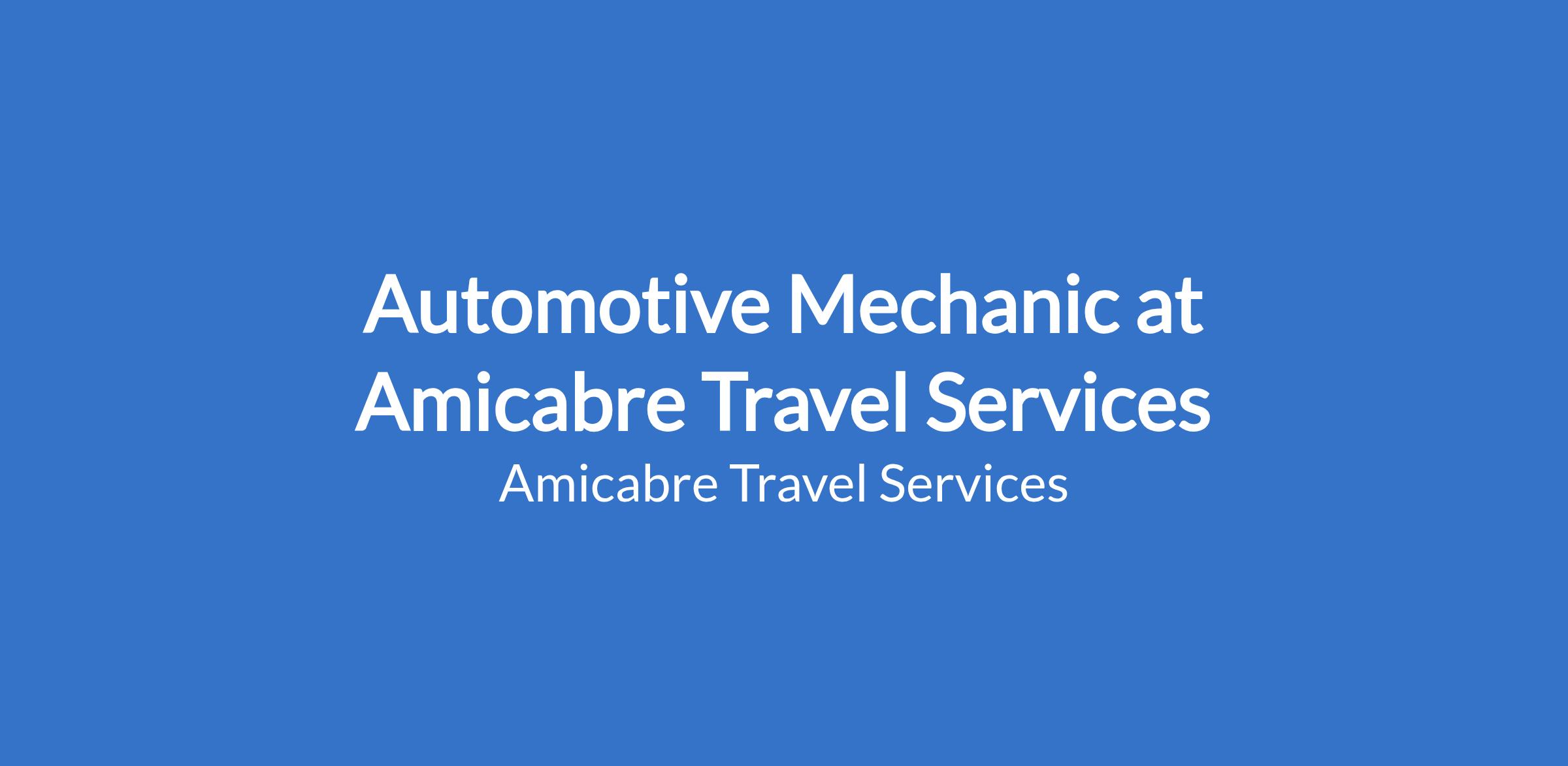 Amicabre Travel Services hereby invites applications from suitably qualified and experienced individuals for the position of Automotive Mechanic. The ideal candidate must demonstrate extensive technical expertise gained in a busy and reputable automotive workshop.