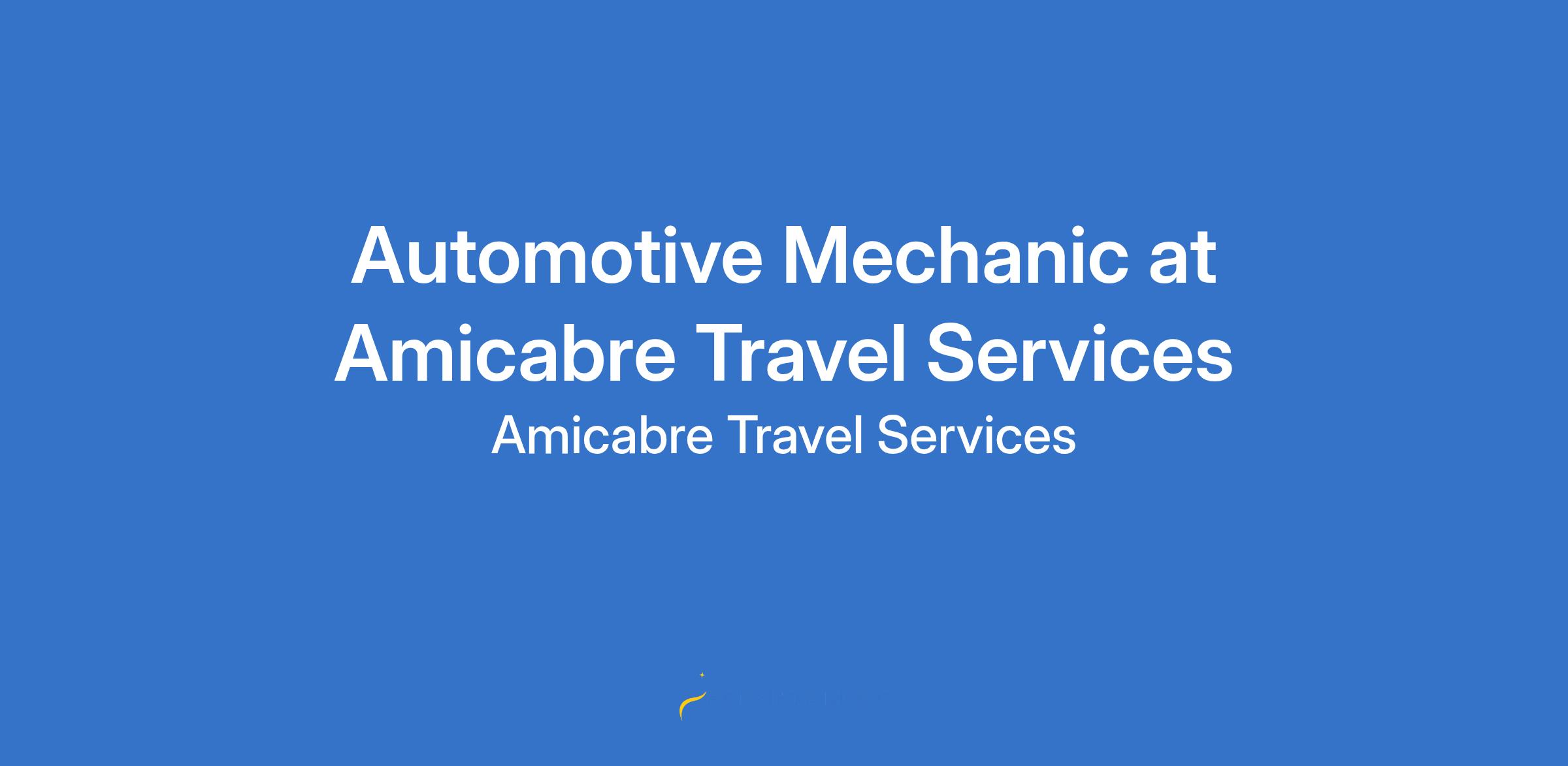 Amicabre Travel Services hereby invites applications from suitably qualified and experienced individuals for the position of Automotive Mechanic. The ideal candidate must demonstrate extensive technical expertise gained in a busy and reputable automotive workshop.