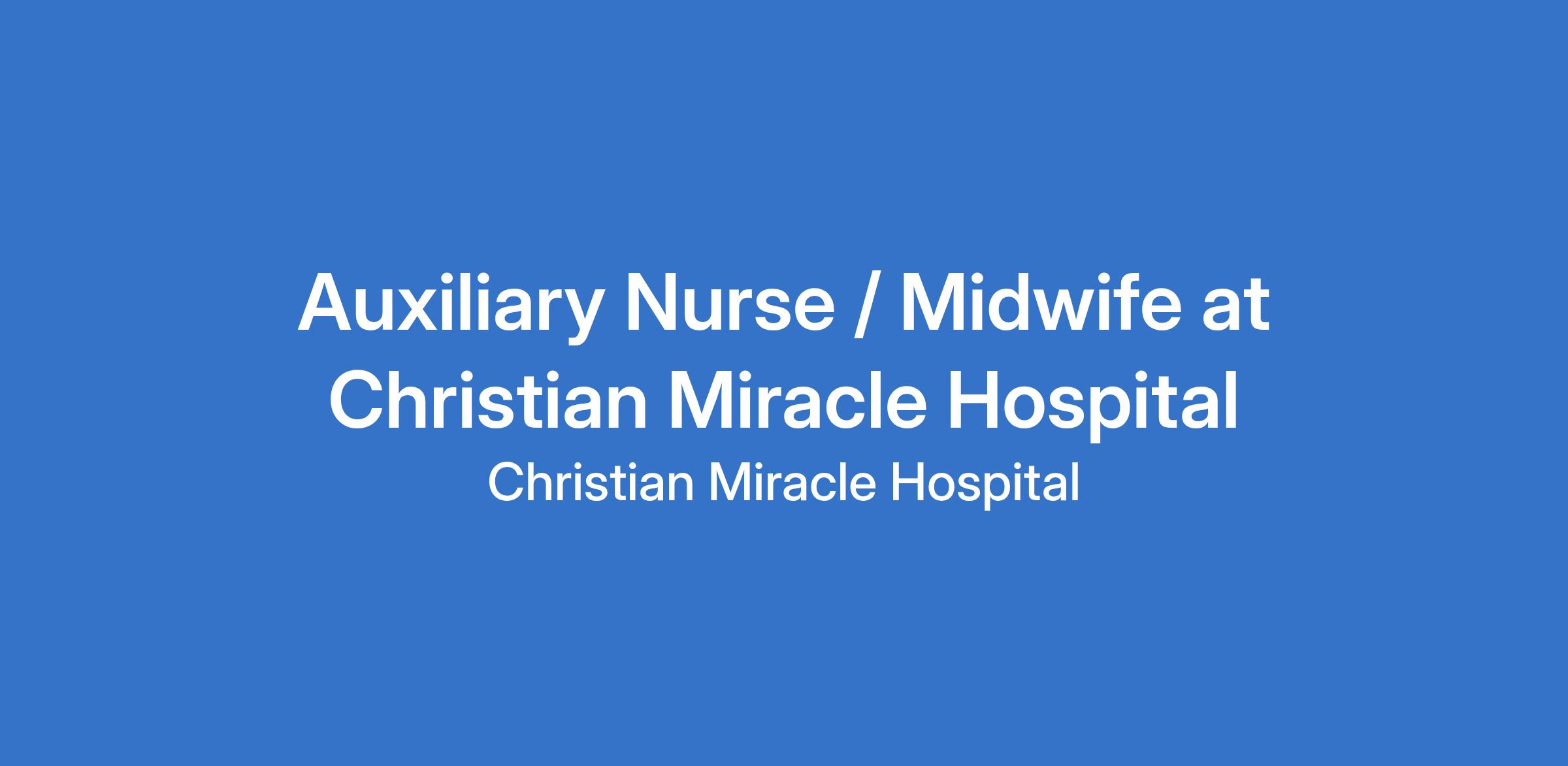 Qualification: Certificate or evidence of training as an Auxiliary Nurse from a recognized healthcare facility or nursing home.