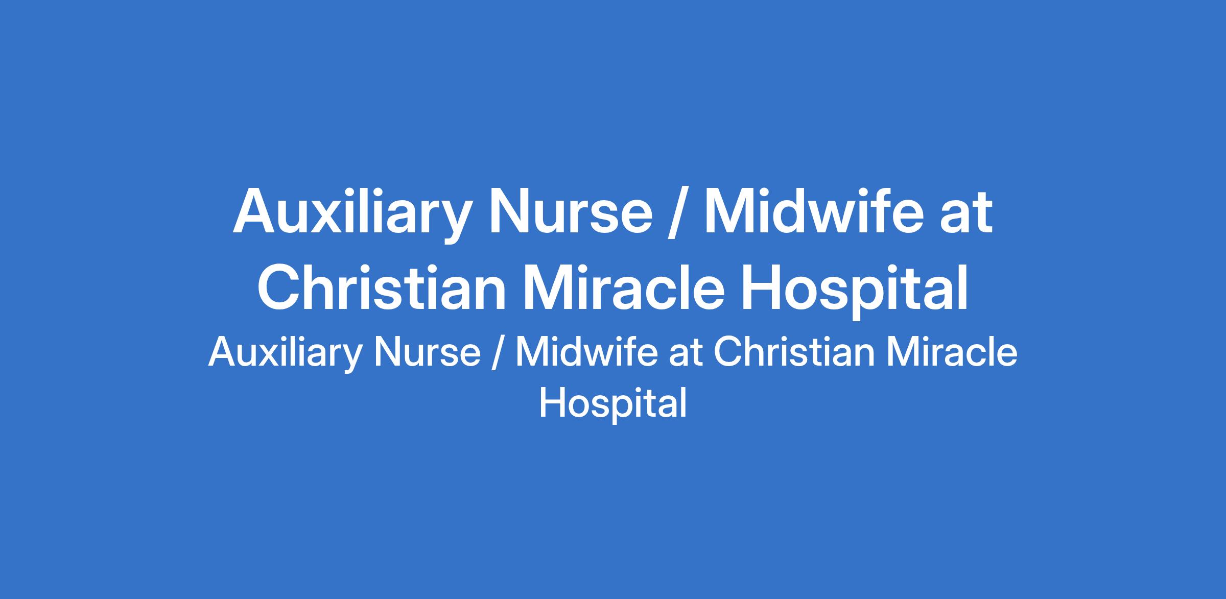 Christian Miracle Hospital is recruiting to fill the position of: Auxiliary Nurse / Midwife. The position is located in Enugu State. Interested candidates should possess a Certificate or evidence of training as an Auxiliary Nurse from a recognized healthcare facility or nursing home, with previous experience working in a hospital setting (especially in a Maternity or OB/GYN ward) is an added advantage.
