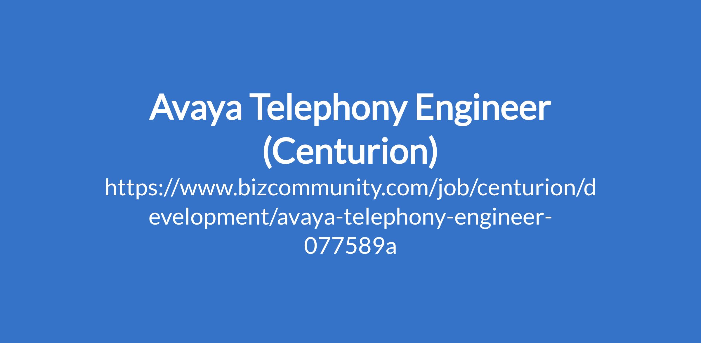 Avaya Telephony Engineer (Centurion)