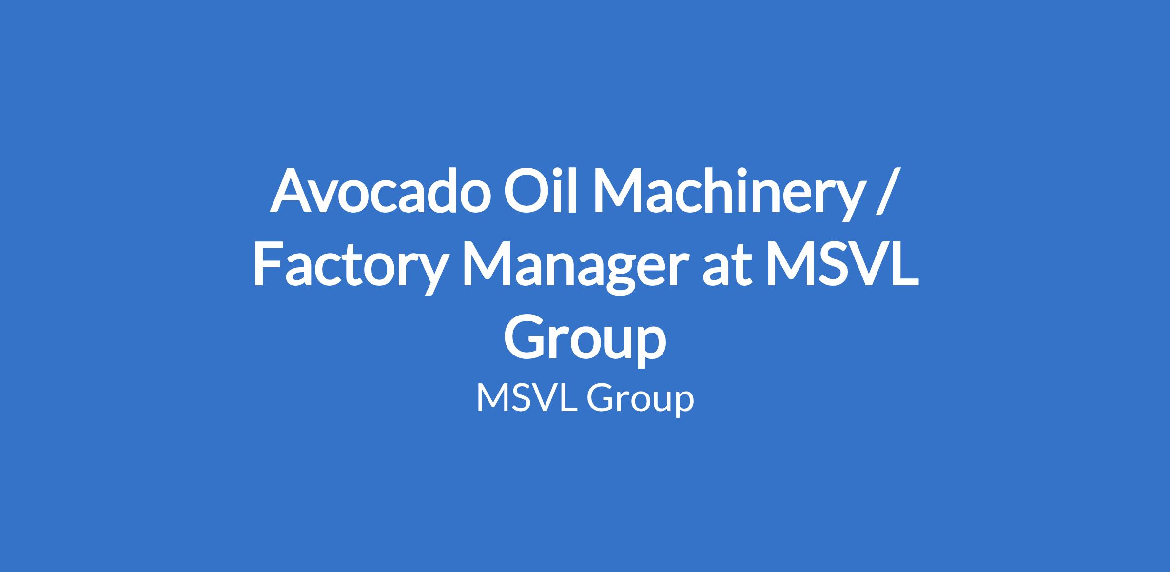 Avocado Oil Machinery / Factory Manager at MSVL Group