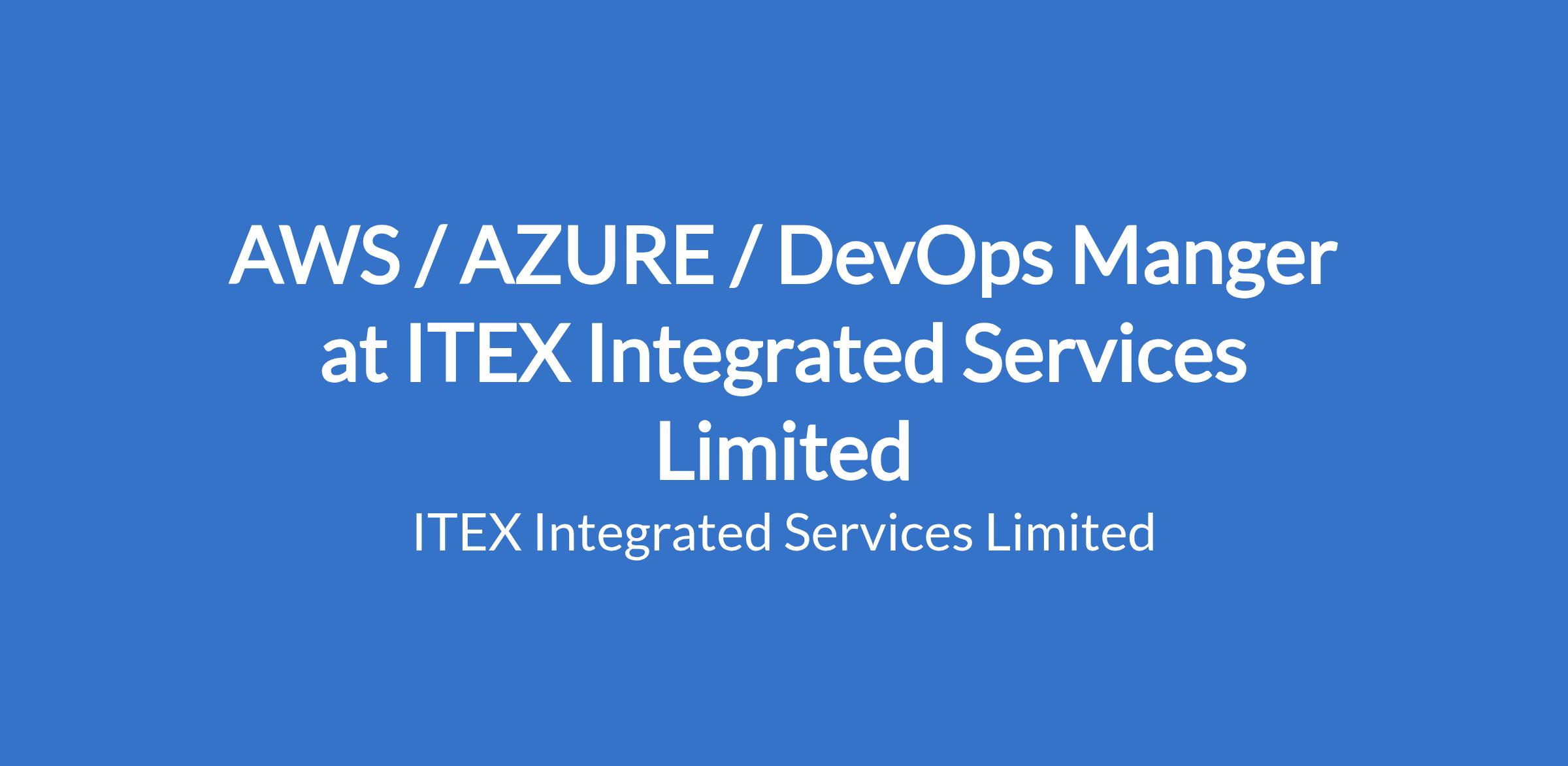 AWS / AZURE / DevOps Manger at ITEX Integrated Services Limited