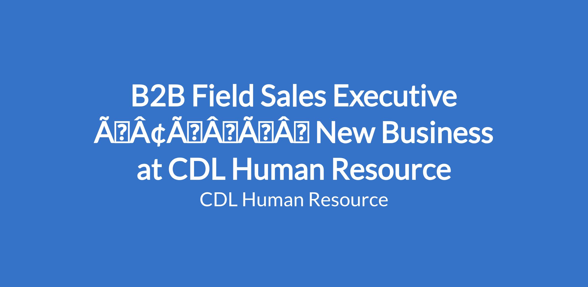 B2B Field Sales Executive âÃÂàNew Business at CDL Human Resource