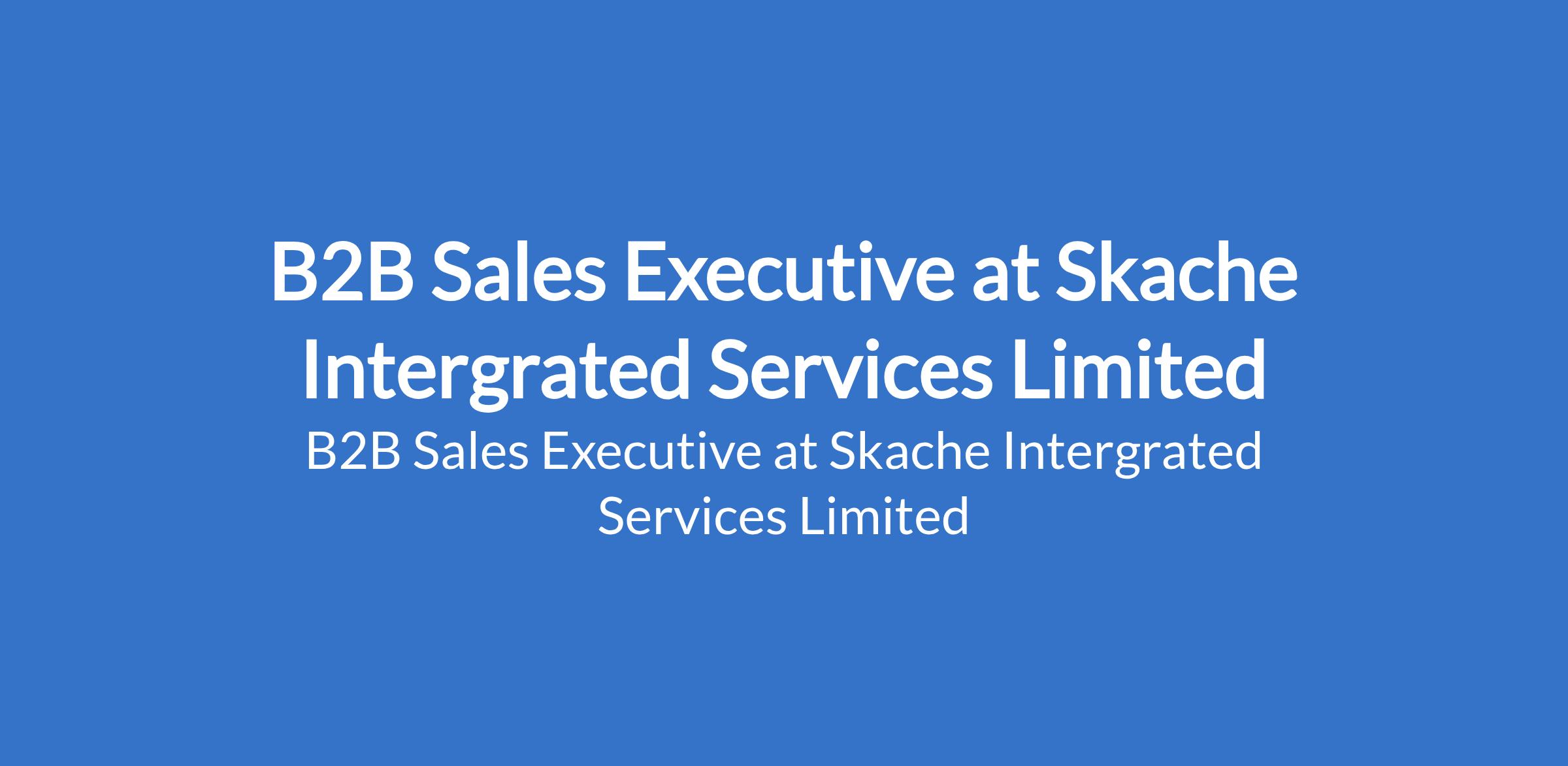 Skache Intergrated Services Limited is recruiting to fill the position of: B2B Sales Executive. The position is located in Magodo, Lagos State. Interested candidates should possess a Bachelors Degree in Business, Marketing, or a related field (preferred) with proven track record of success in sales in corporate environment and 3 years experience in relevant Organization.