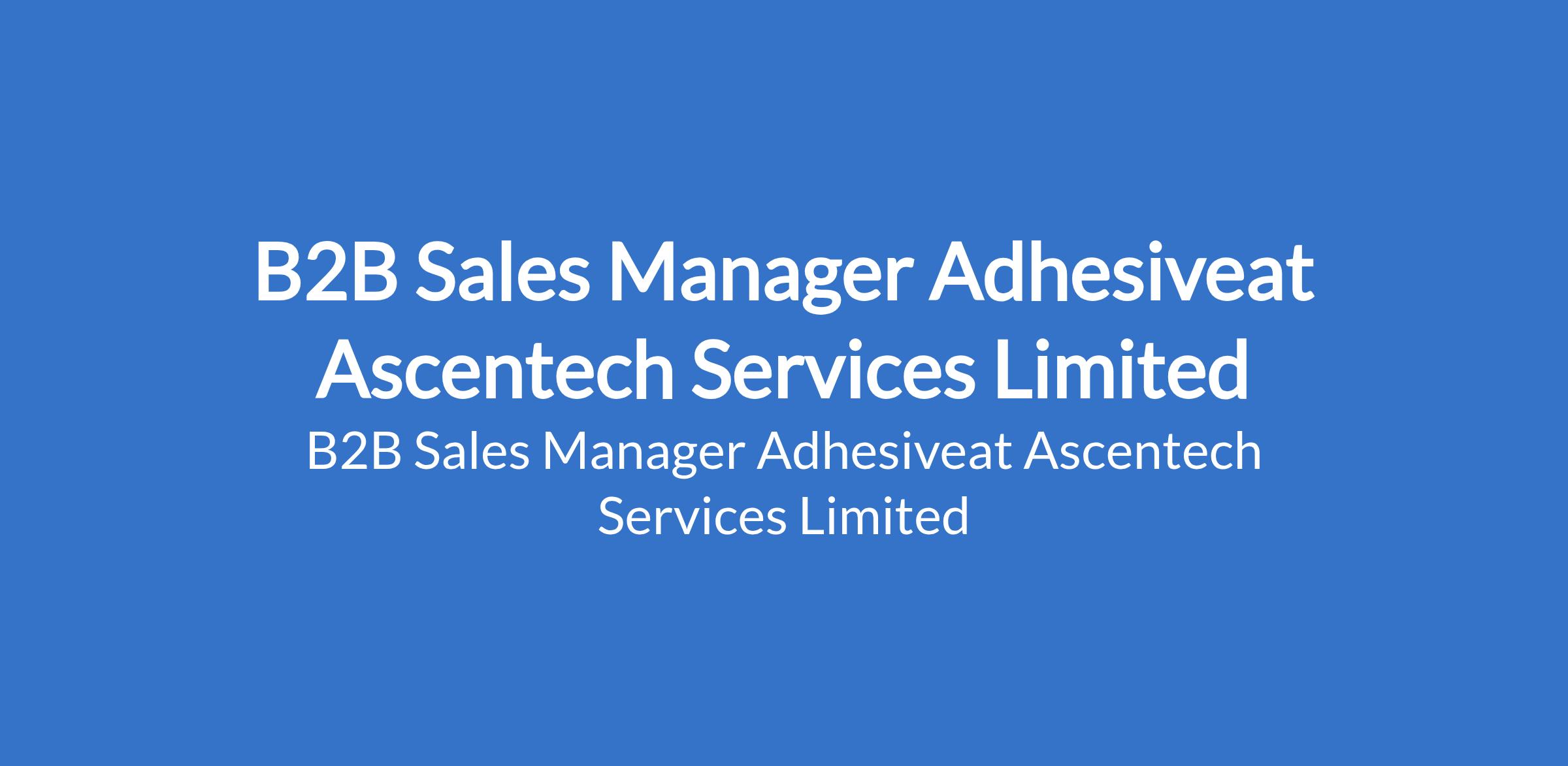 Ascentech Services Limited is recruiting to fill the position of: B2B Sales Manager Adhesive. The position is located in Ilupeju, Lagos State. Salary: N500,000 - N800,000 monthly. Interested candidates should possess a Bachelors Degree in Business, Marketing, Chemical Engineering, or a related field with a minimum of 5 years experience in B2B sales, in adhesives, industrial chemicals, or related products.