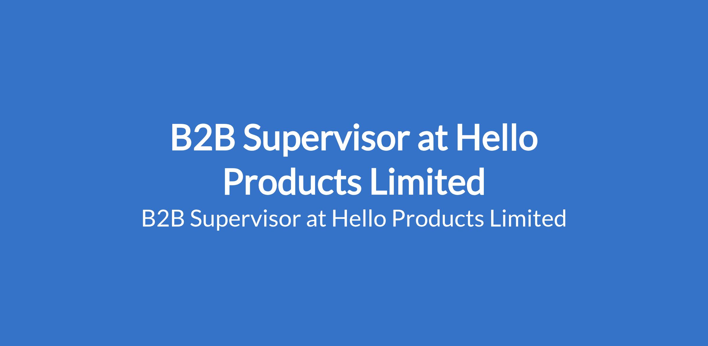 Hello Products Limited is recruiting to fill the position of: B2B Supervisor. The position is located in Abuja (FCT). Interested candidates should possess a BSc. or HND in any discipline with 2 5 years B2B Sales experience in Personal Care Industry and must be fluent in English.